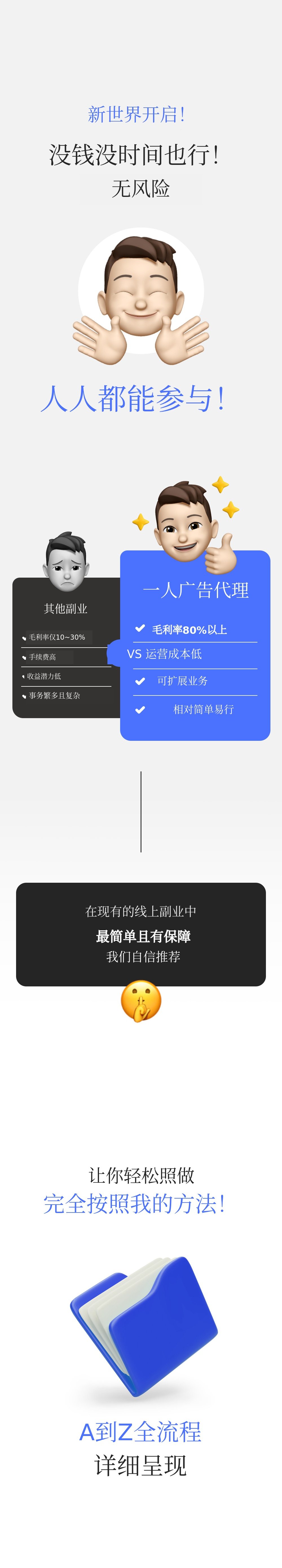 广告代理创业的最大优点是没有库存压力,创业时也不需要资金!