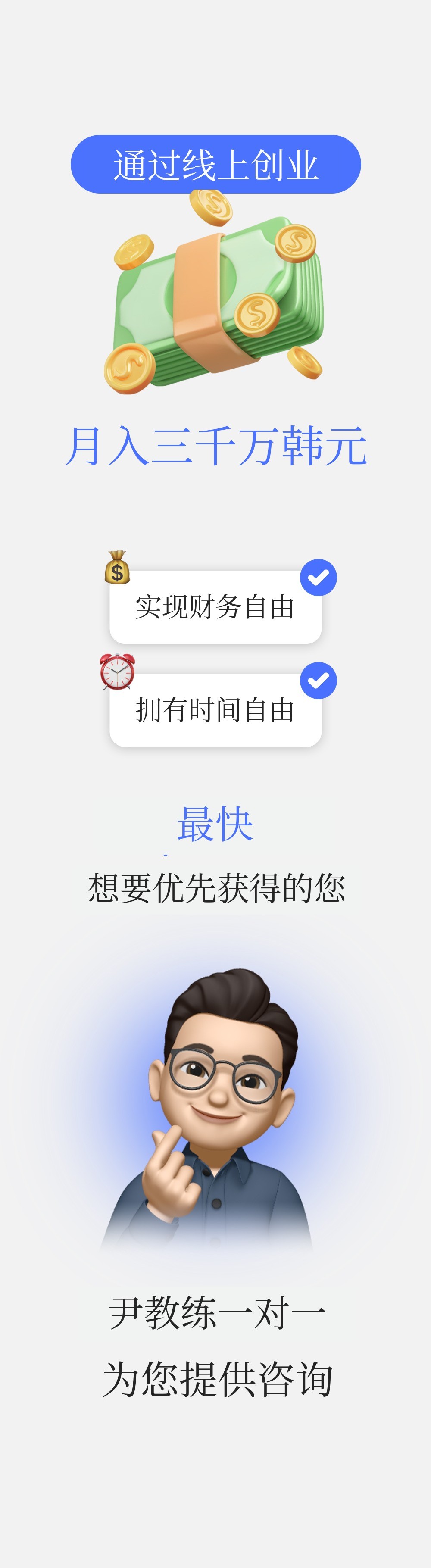 为了更好地销售自己的产品,我开始正式学习广告,这段经历一直延续到现在,让我一个人实现了年销售额2.7亿韩元!