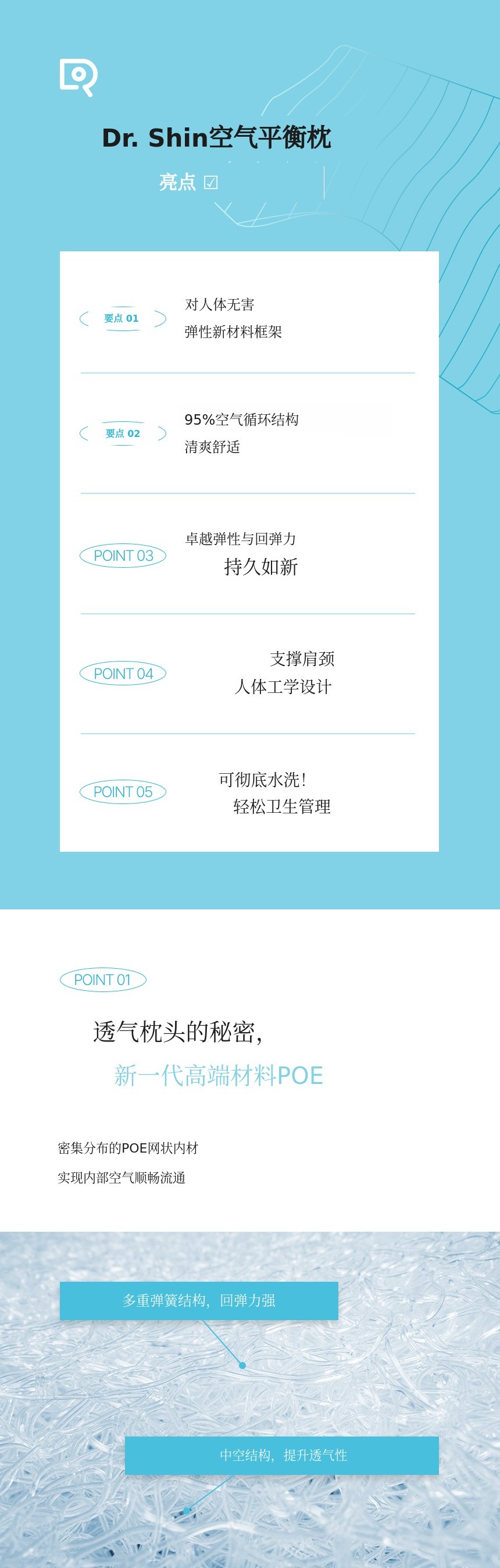 1. 🛏️ 空气平衡透气枕 - 冷脑技术与肩部支撑区降低脑温 2. 🌬️ 卓越通风与舒适 - POE材料和3D空气矩阵优化散热 3. 🎁 独家众筹优惠 - 合理价格及香薰套装赠送