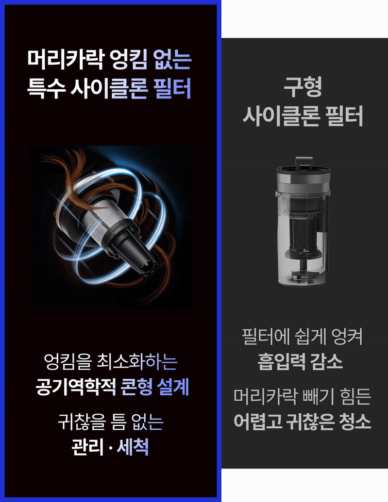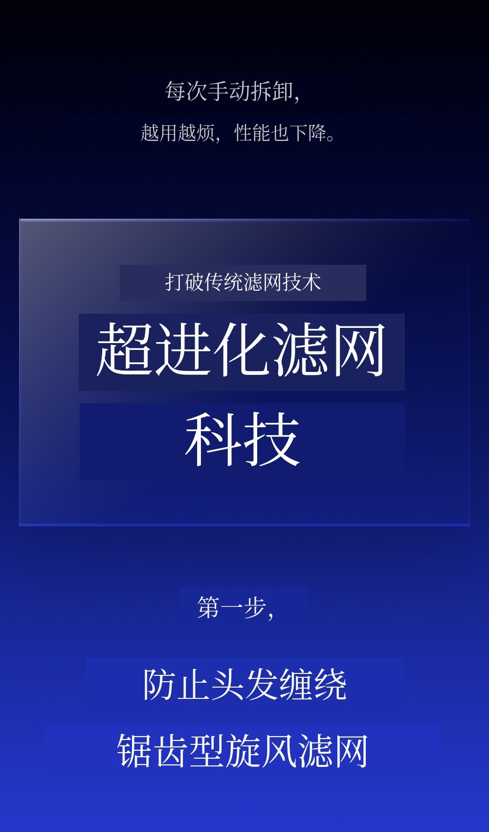 为了防止头发缠绕,对滤网结构 进行了数十次修改,