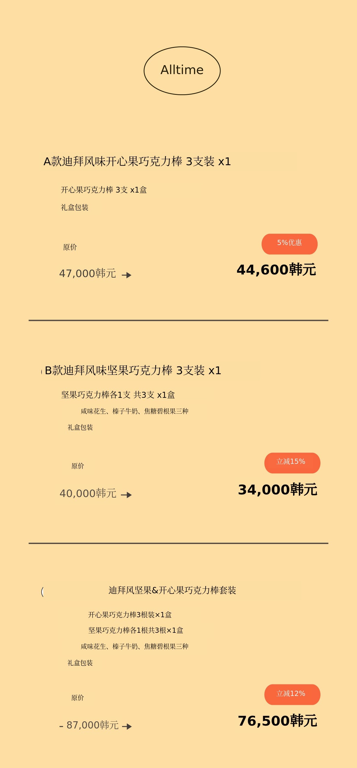 坚果为每盒三种各1颗 装入。