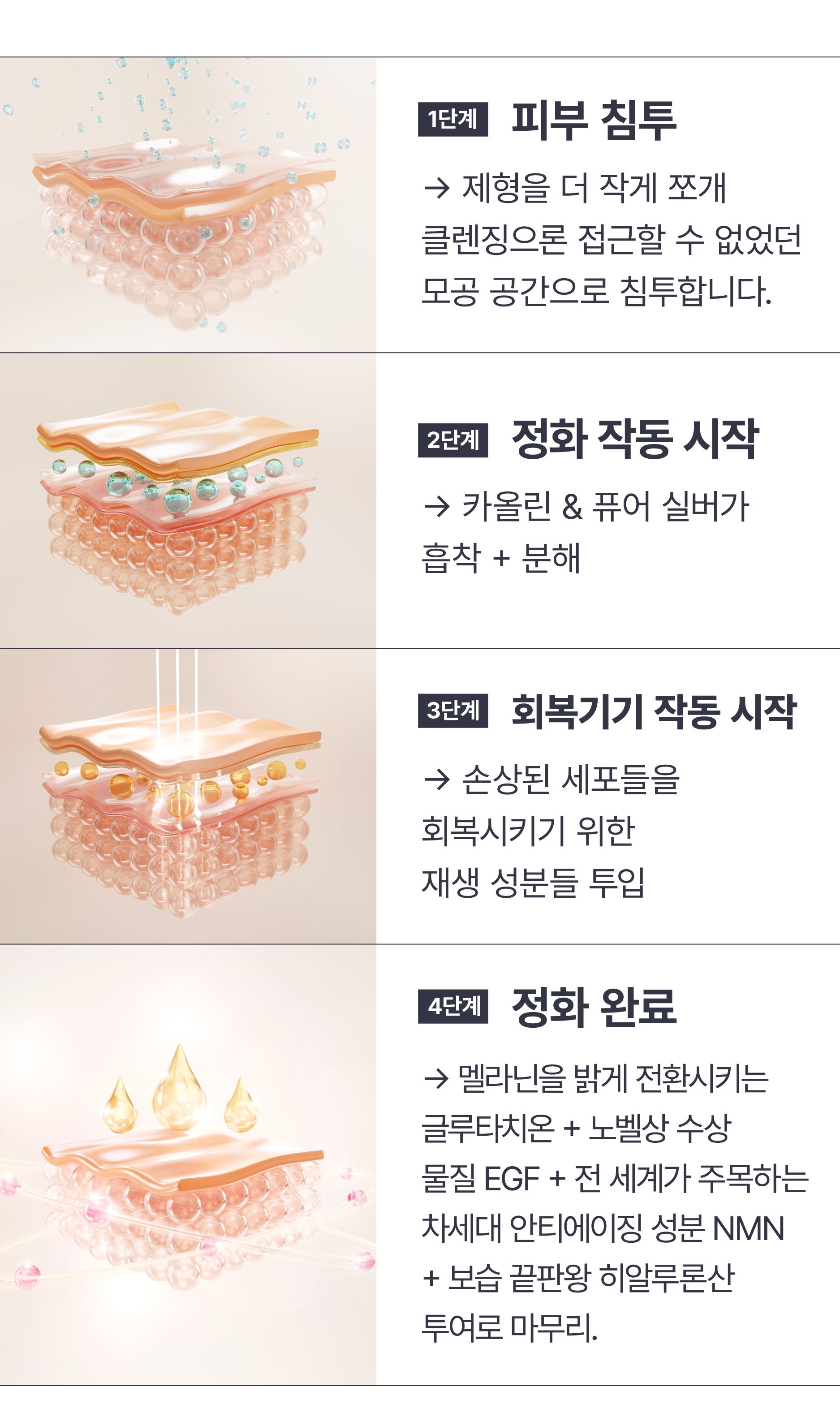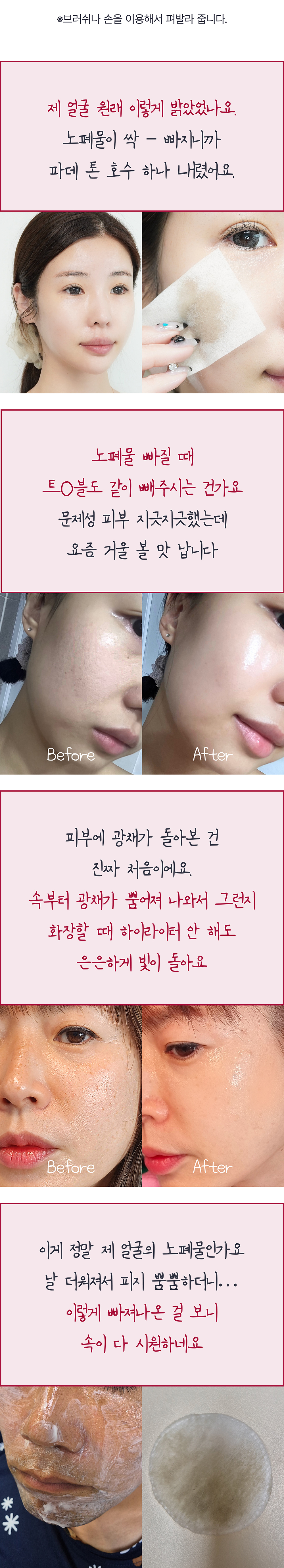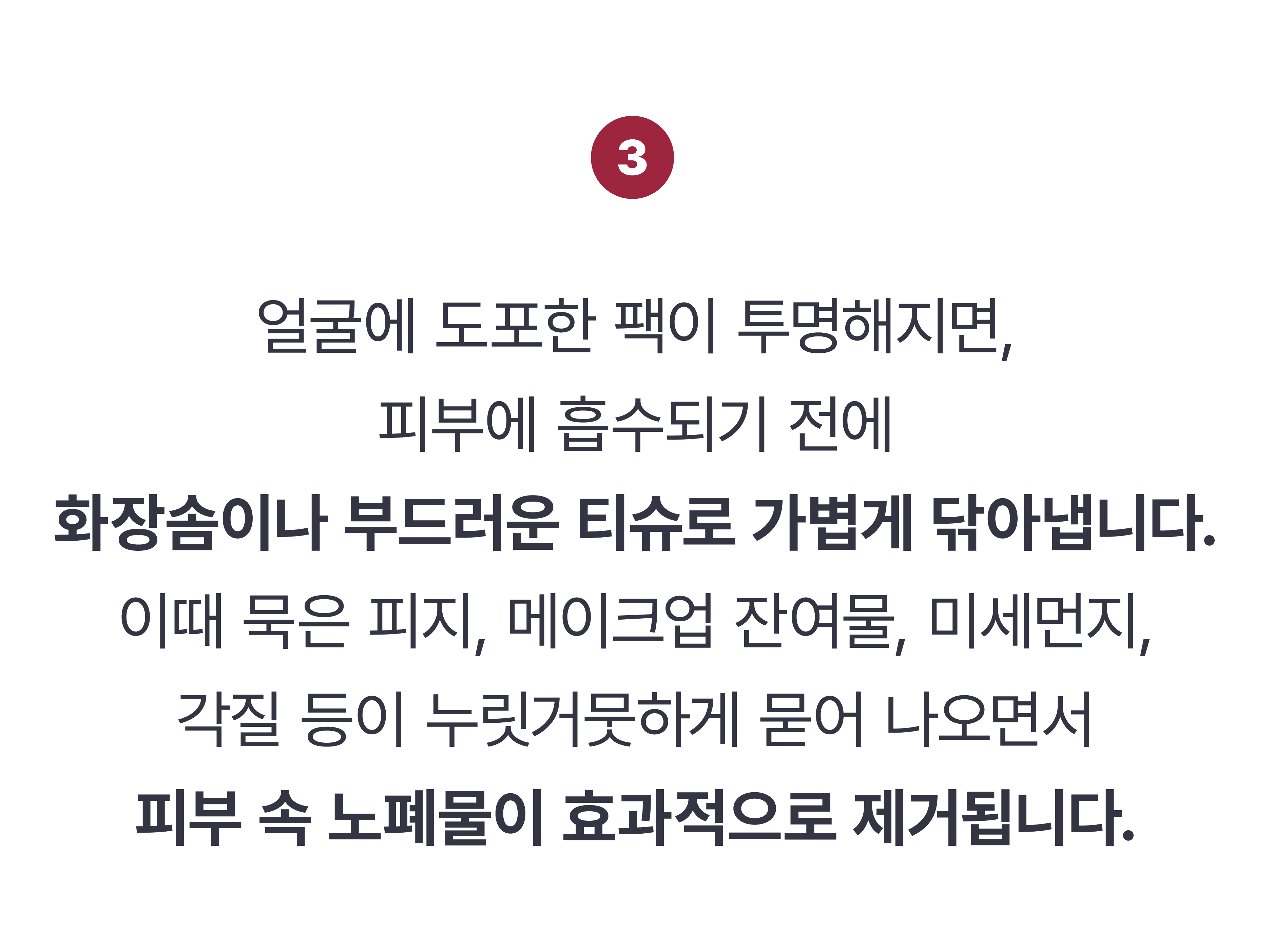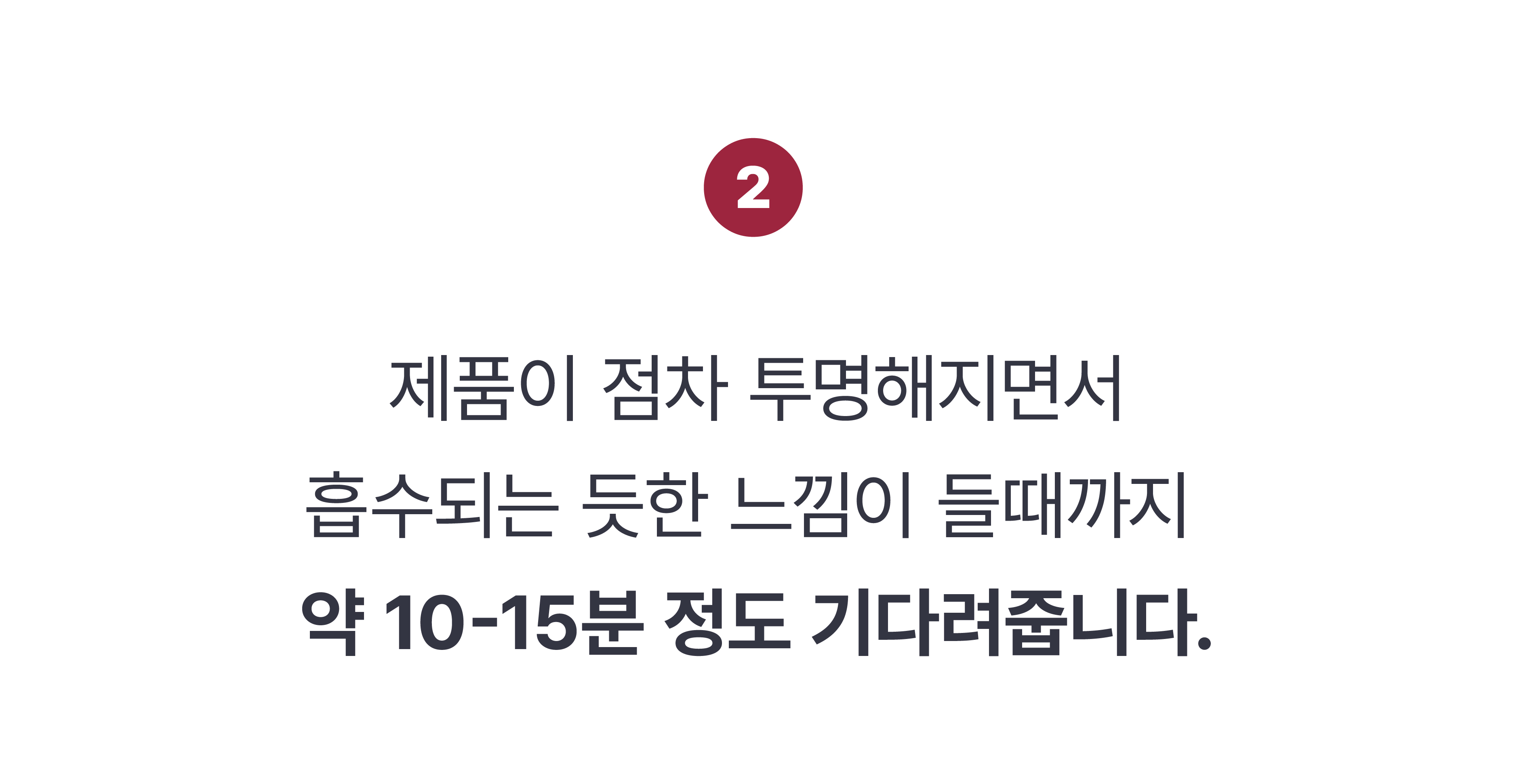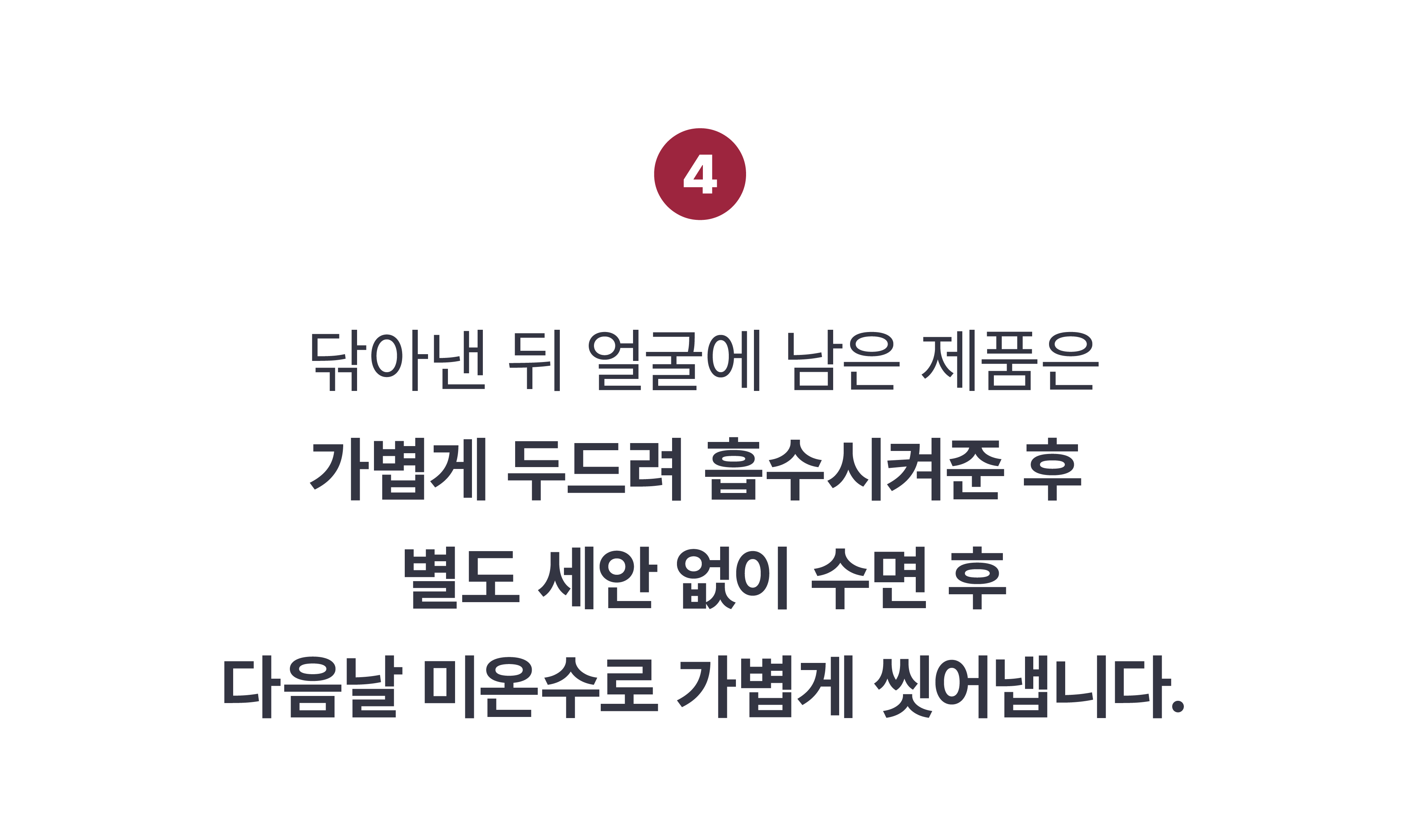 닦아낸  남은 제품은 씻지 않고 두드려 흡수시켜 주세요별도의 세안은 필요하지 않습니다.