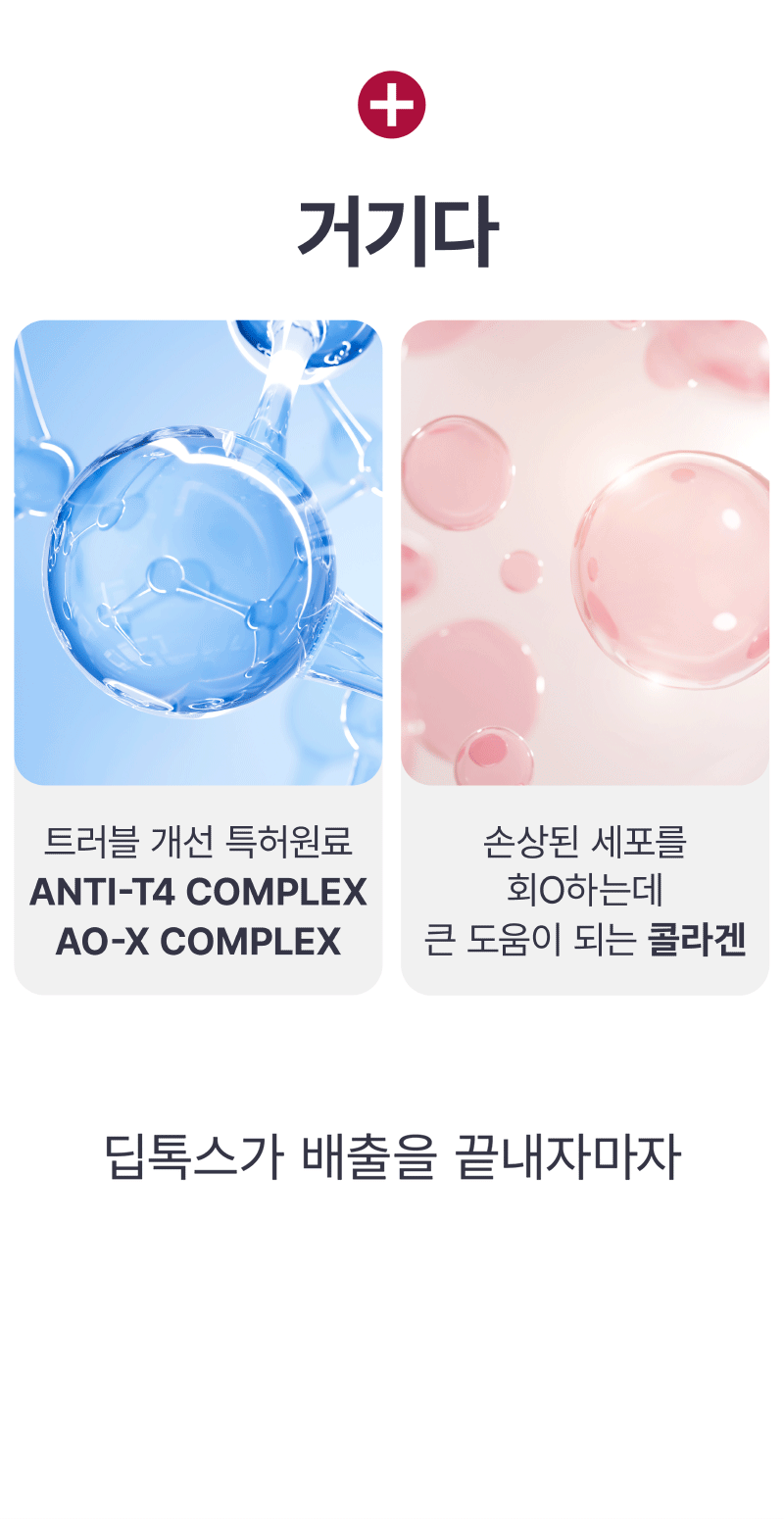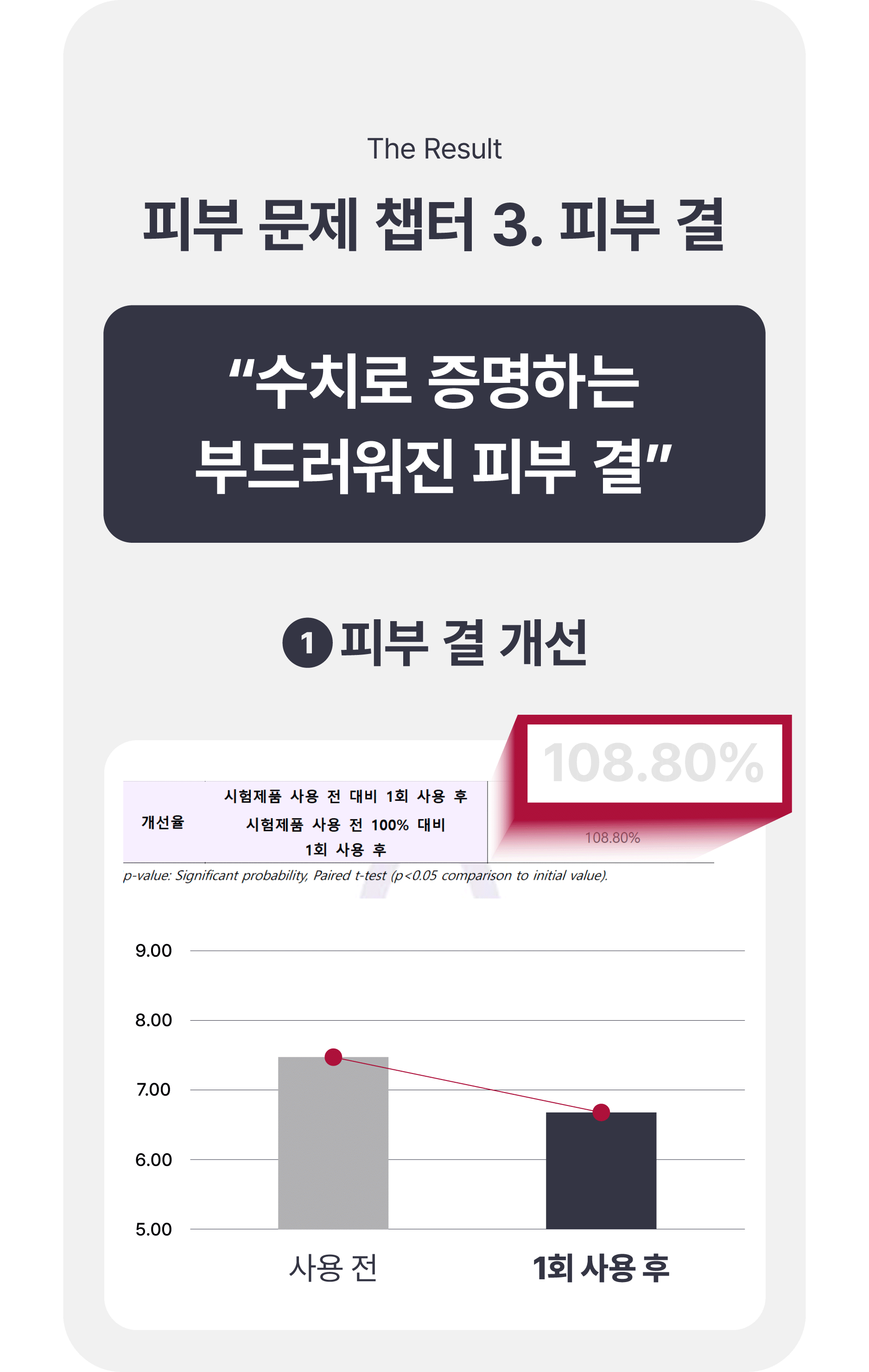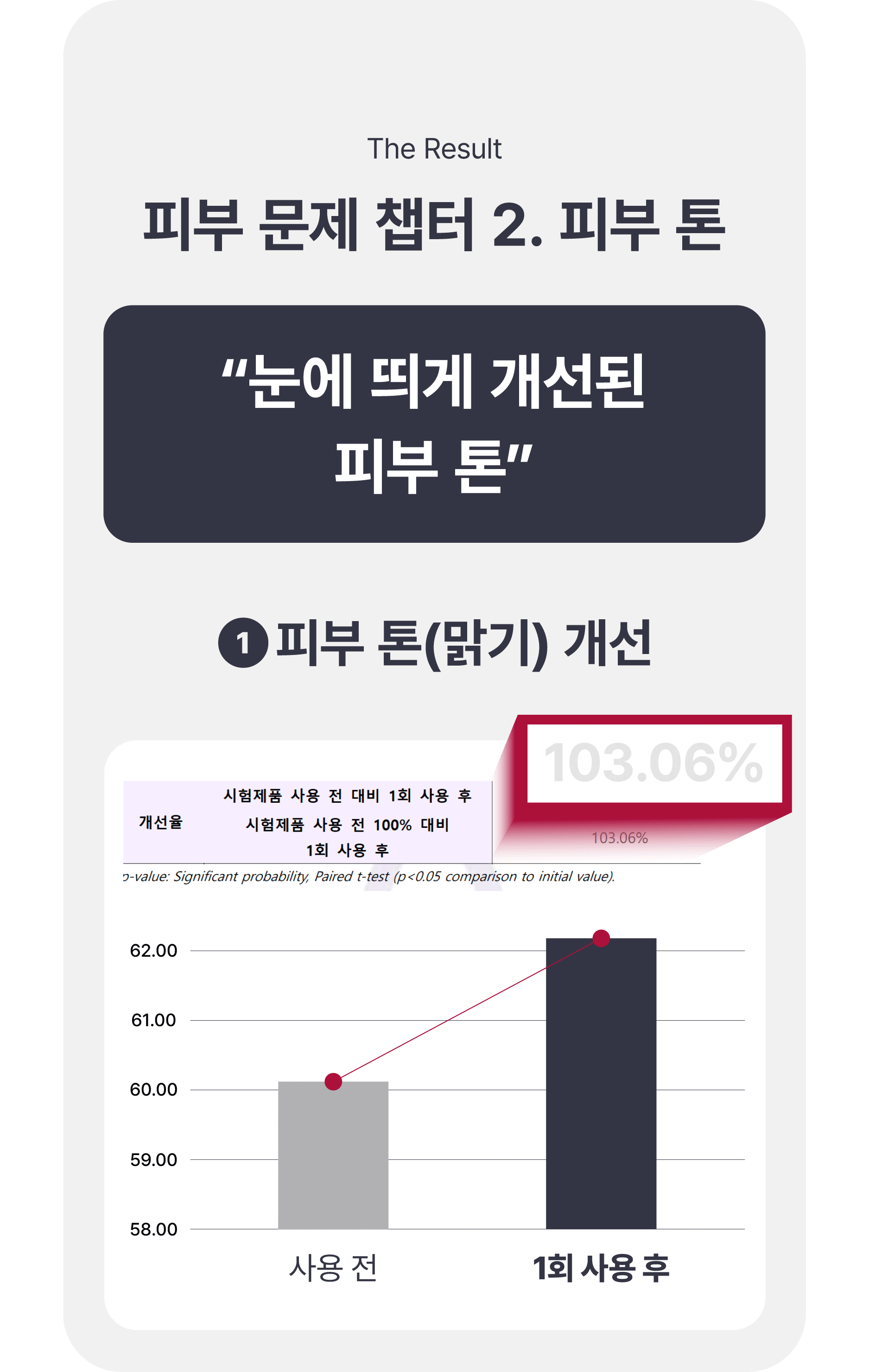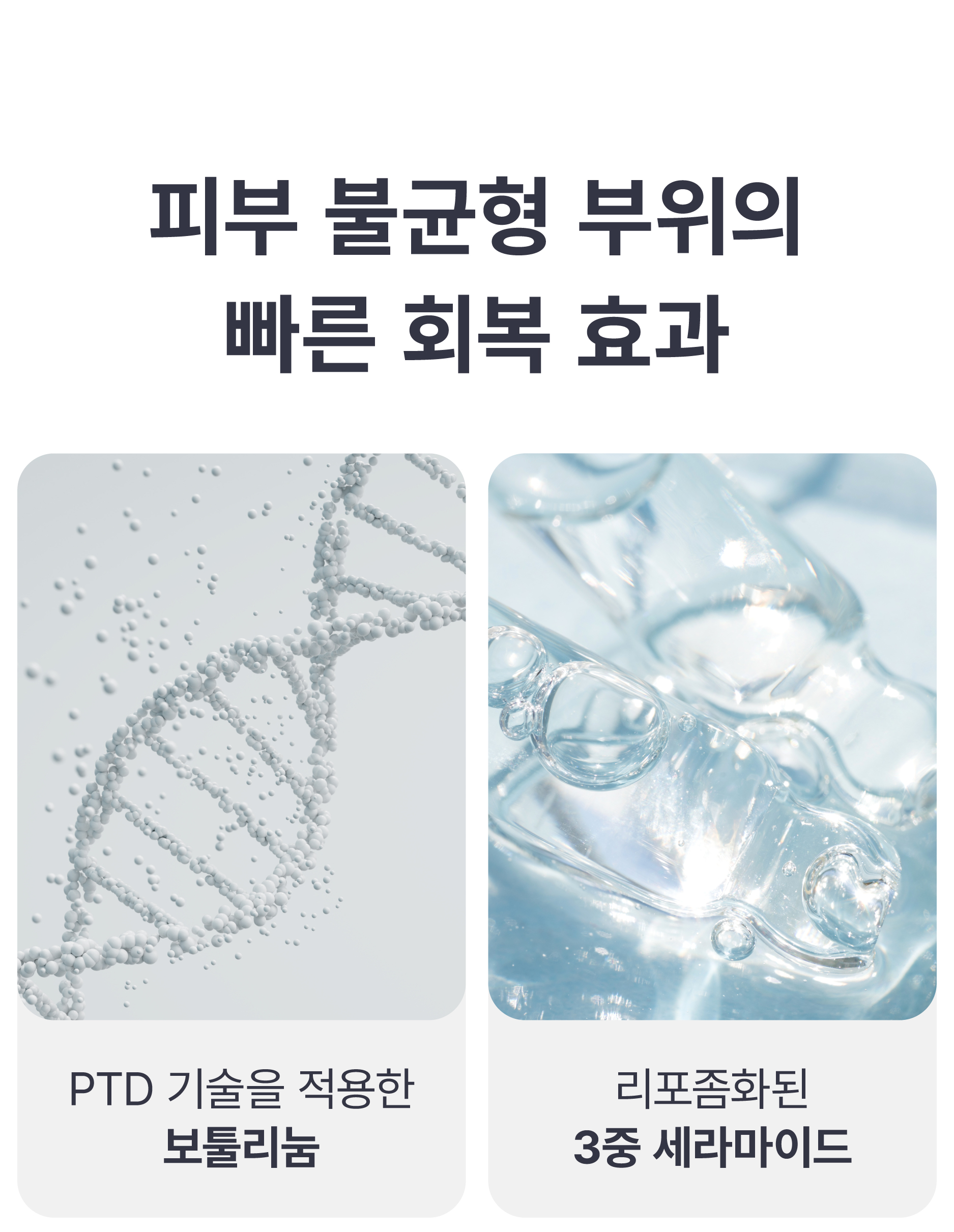 특허받은 독자기술로, 더 깊숙하게 들어가 피부 불균형이 생기는 가장 큰 요인, 주름의 움직임을 방지해 효과적인 주름개선 효과까지 함께 겨냥합니다.*원료적 특성에 한합니다.
