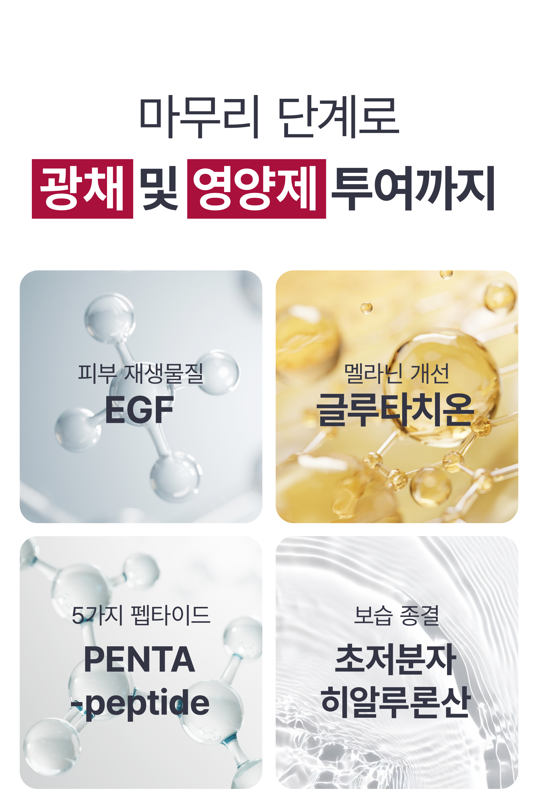 - 5가지 펩타이드는 주름 개선은 물론 조직 회복 및 재생에 효과적입니다.