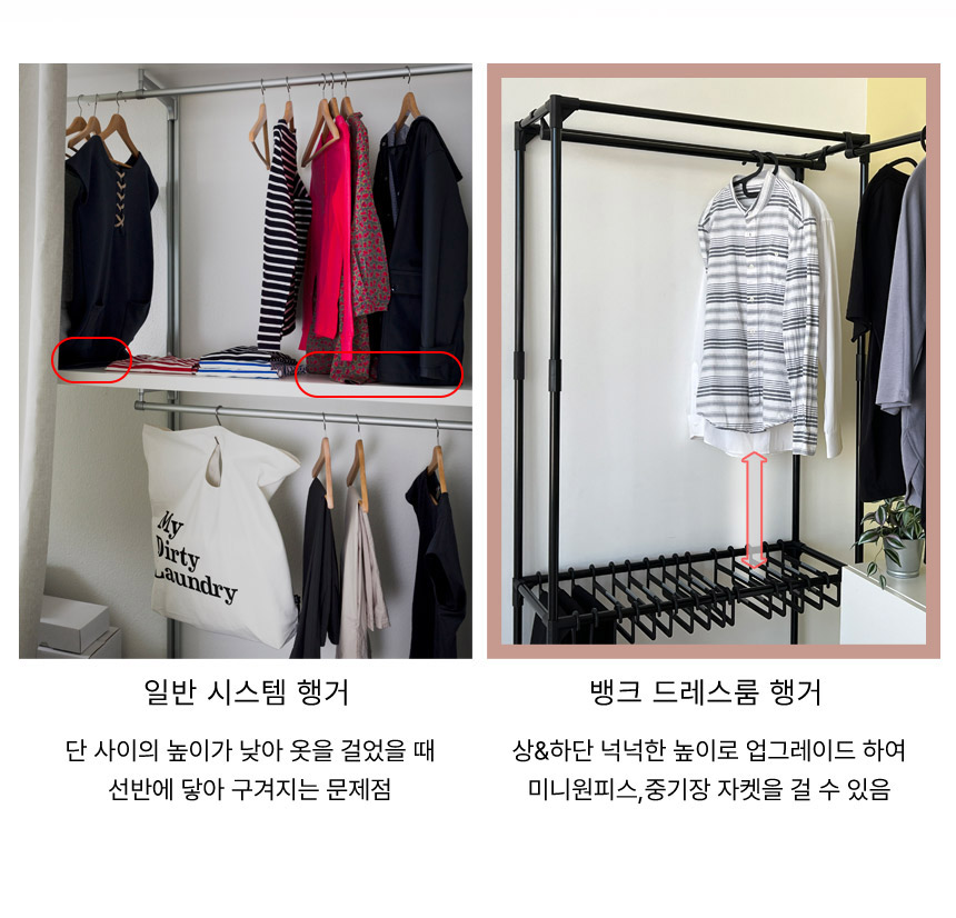 가운데 긴옷 원피스나 코트 걸어두기좋아요!