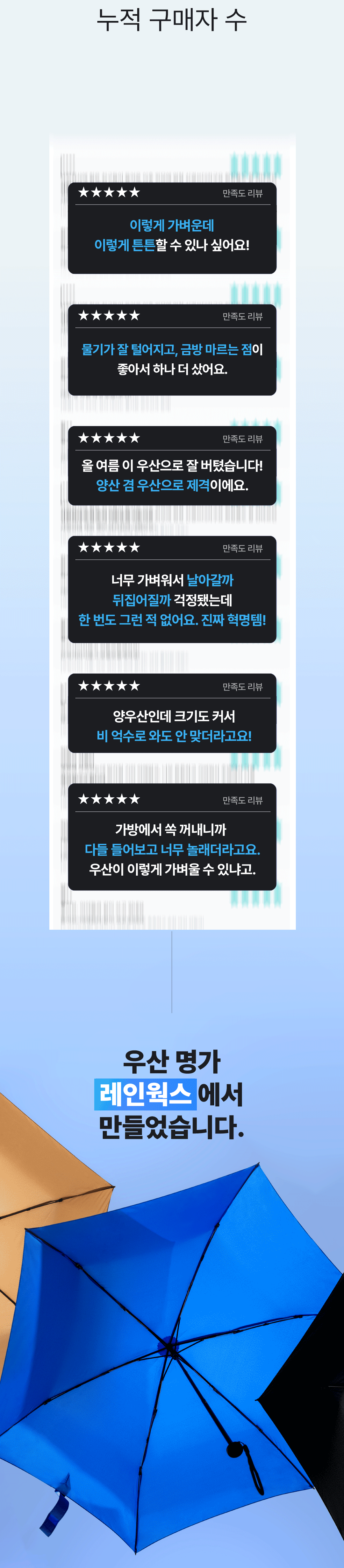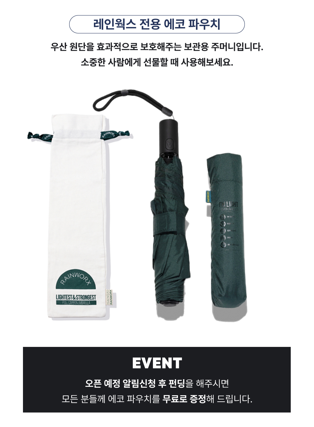 프리오더금 사용 계획 : 서포터 분들의 소중한 프리오더금은 우산 생산 비용과 신제품 및 금형 디자인 연구개발 에 사용됩니다. 감사합니다.