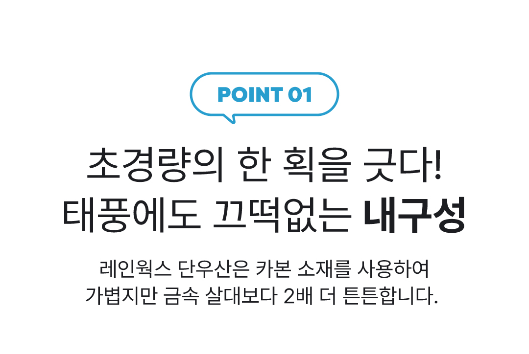 저희는 카본 소재를 활용하여 오래쓰는 우산을 지향합니다. 그래서 많은 양의 우산 폐기물을 줄이는데 기여하고, 일상에 꼭 필요한 우산의 자원순환을 위해 우리가 할 수 있는 활동이라 생각합니다.