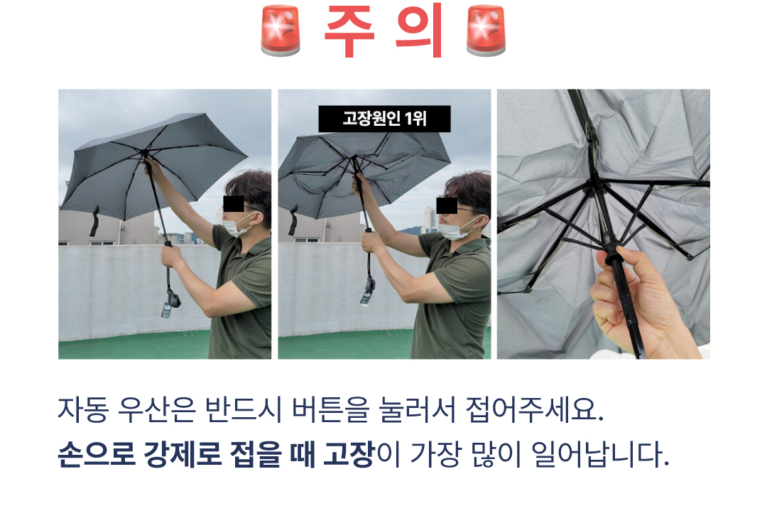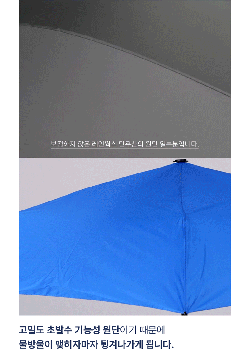 -장마철 폭우나 강수량이 많을 경우 원단이나 재봉선 사이로 물이 흐를 수 있으나 이는 불량이 아닙니다.(이건 국내에 판매되는 모든 우산에 적용되는 유의사항입니다)