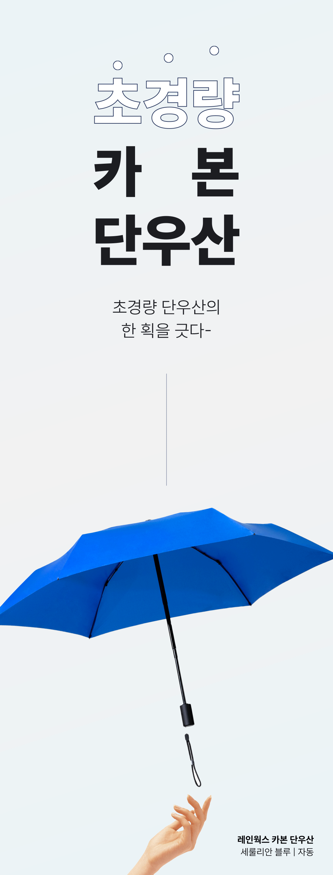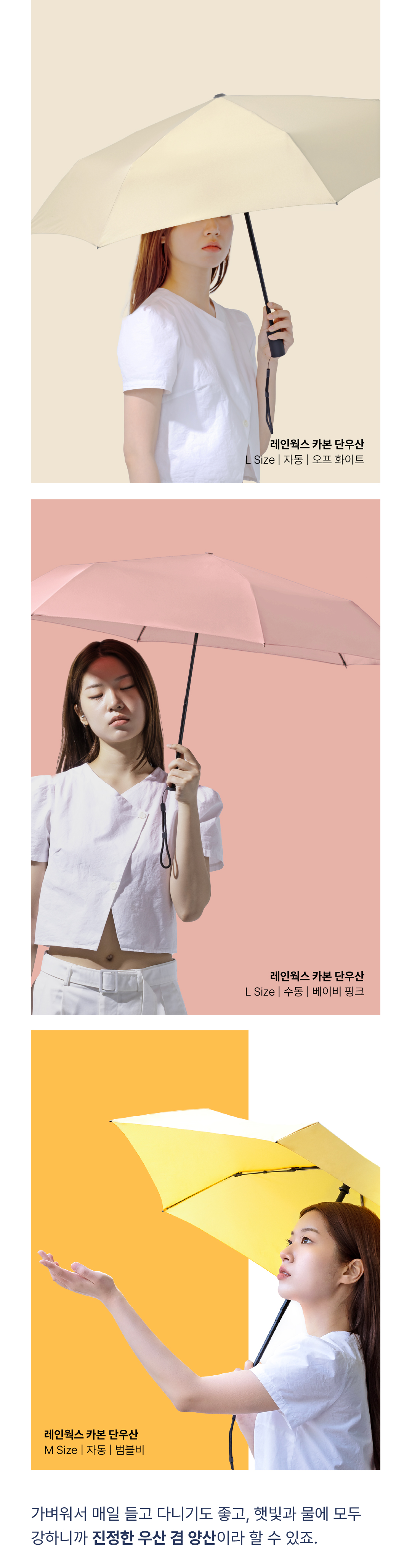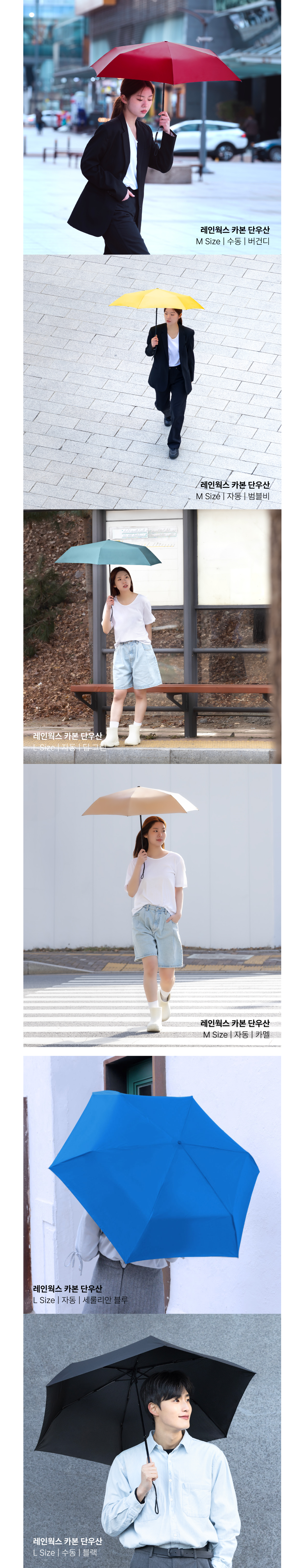 우리나라의 아열대? 기후화로 인해 우산 사용이 빈번해 지고 있습니다. 우산의 무거움과 휴대하기 불편함, 파손, 분리수거의 어려움, 폐기로 인한 환경오염 등을 조금이라도 덜어주는 우산이 되길 바라는 마음에서 풀카본 우산을 선보입니다. 언제나 응원해 주셔서 감사합니다.