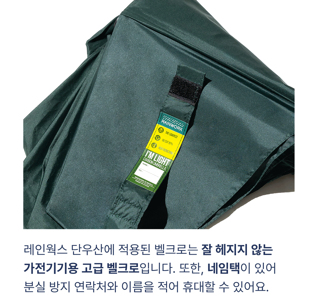 ★ 우산 사용 후 펴서 잘 말려주세요. 말리지 않고 접으면 우산 원단에 습기가 차며 물기를 흡수할 수 있습니다. 장기간 반복될 경우 방/발수력에 악 영향을 줄 수 있으니 참고 바랍니다.