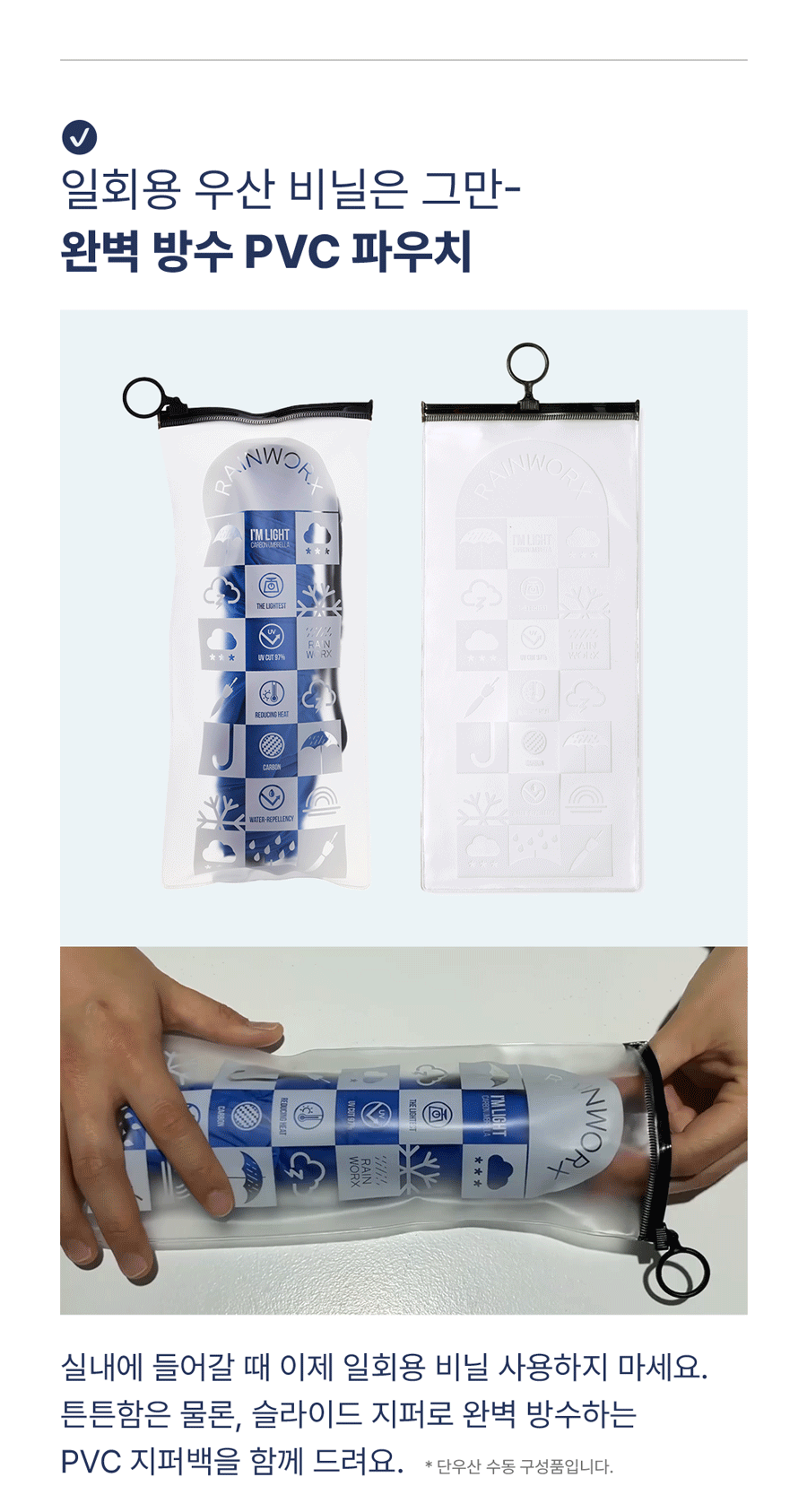 1. 우산 비닐커버 대신 저희 어깨끈이 있는 우산커버를 사용해 주세요.