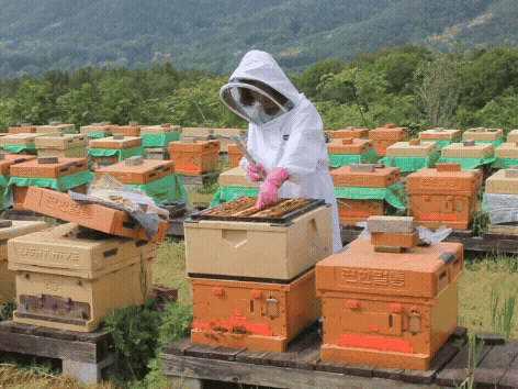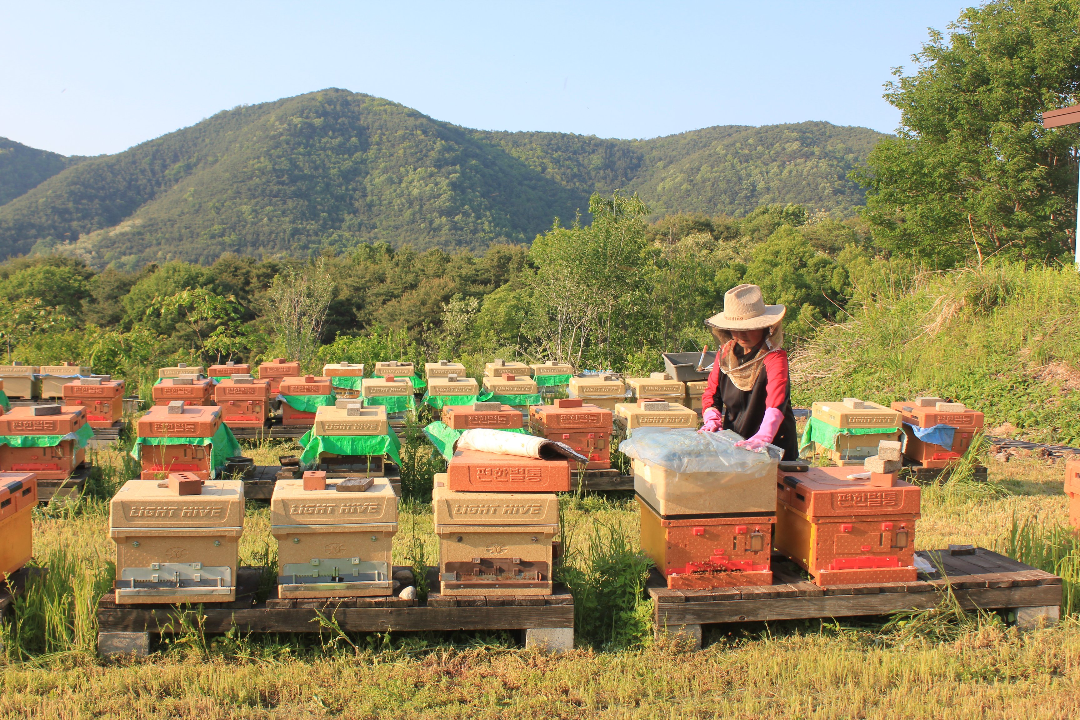 正在检查蜂箱的李恩京农夫(25.06.11 拍摄)