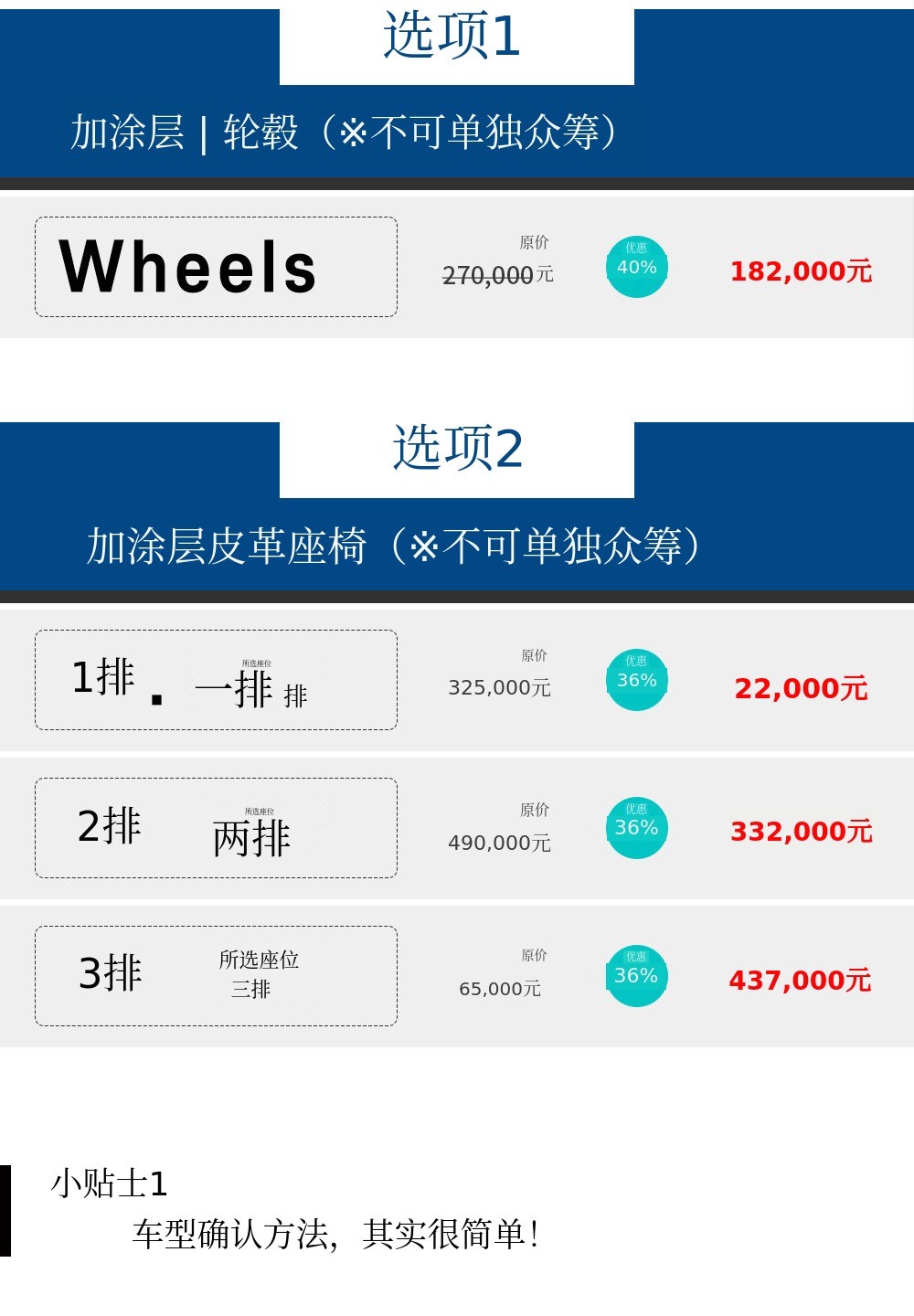 - 若回报的构成与车型不符,则无法预约且无法返还众筹款。