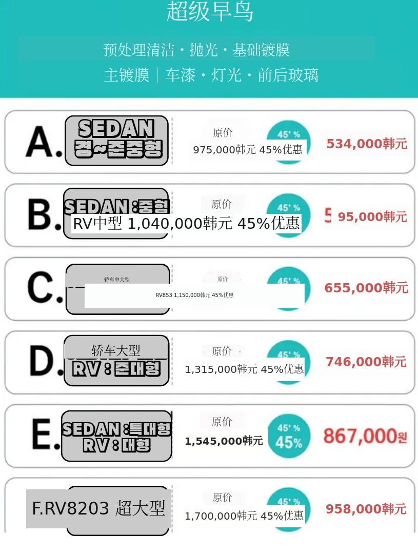 - 作业所需时间:根据车型和污染状况不同,需时5~7小时左右。所有作业将在预约当天完成,并可当天提车。