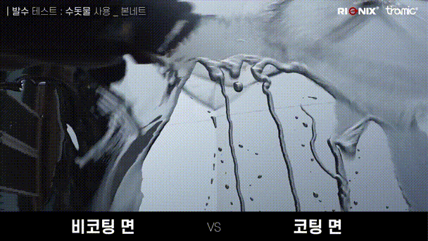 ‘Tiramic’ 涂层水分接触表面瞬间 迅速 弹开。
