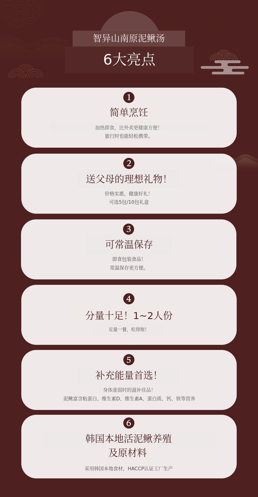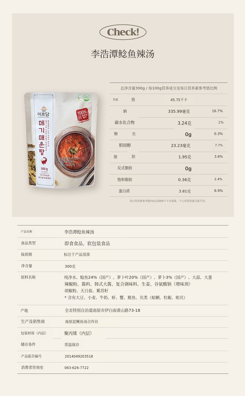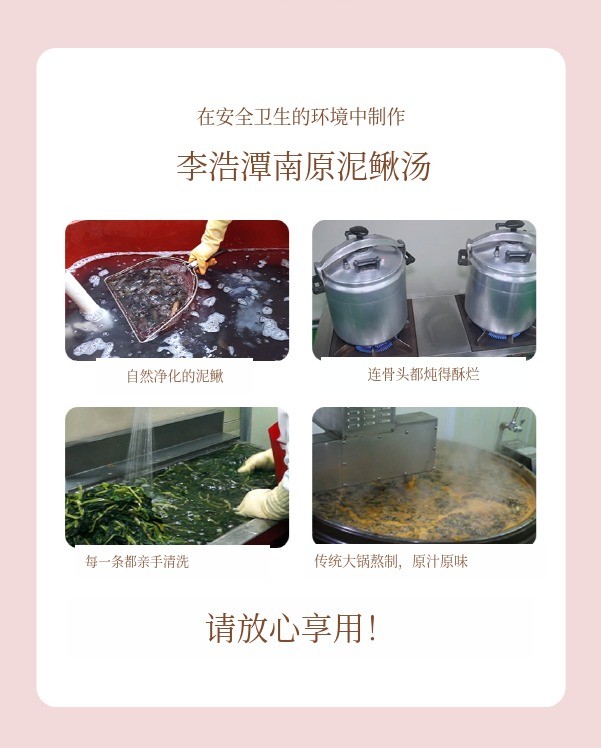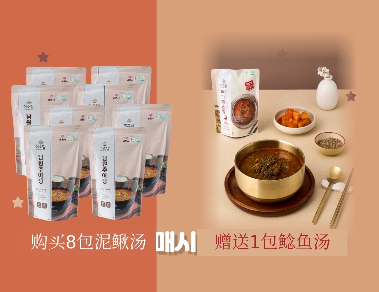 1. 🍲 南原传统泥鳅汤 - 采用国产活泥鳅和传统工艺制作的健康滋补品 2. ⏱️ 简便3分钟加热 - 微波炉加热3分钟,适合忙碌生活 3. 🎁 赠送泥鳅汤活动 - 购买8包泥鳅汤赠送1包鲶鱼汤
