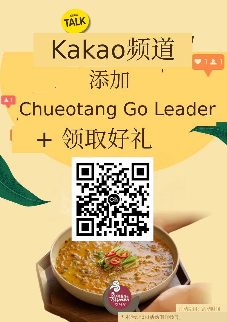 我们将抽取5位添加Kakao频道的朋友,赠送智异山泥鳅汤1包。