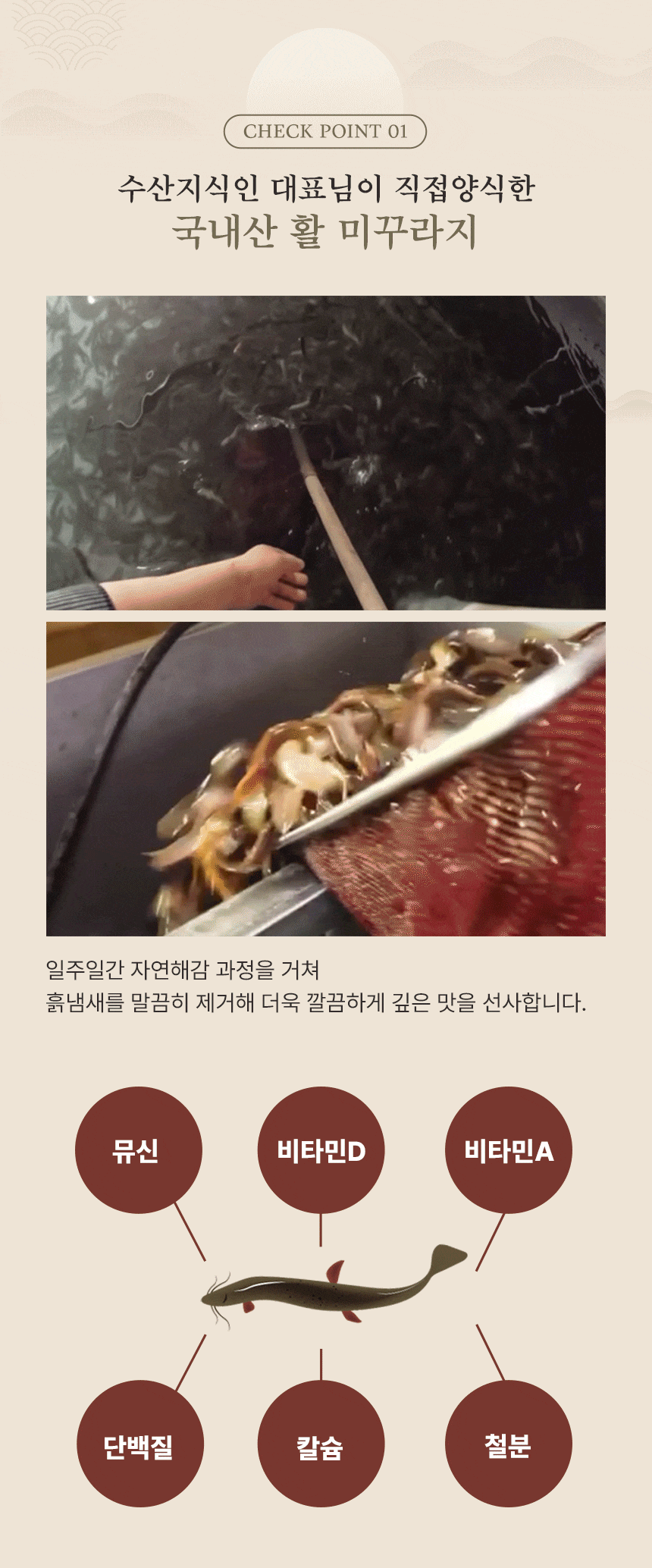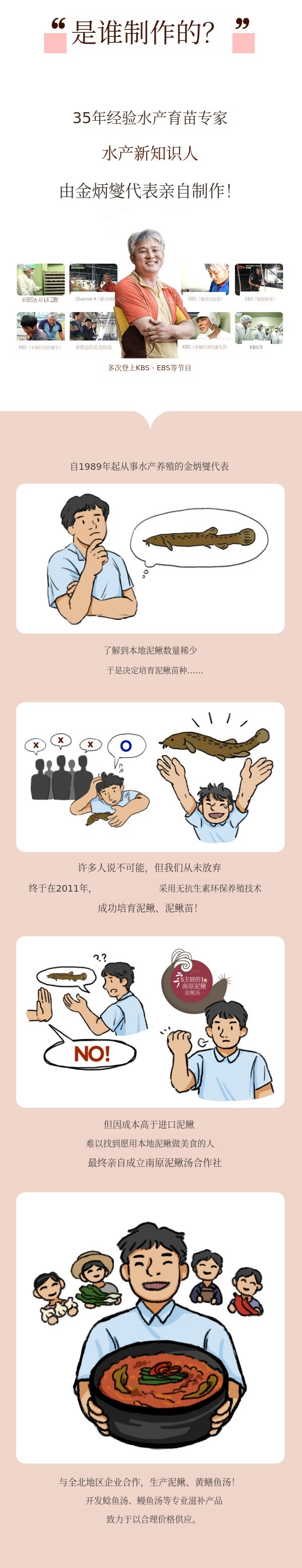 我们是由韩国唯一的水产新知识人代表亲自养殖的国产泥鳅制作而成的