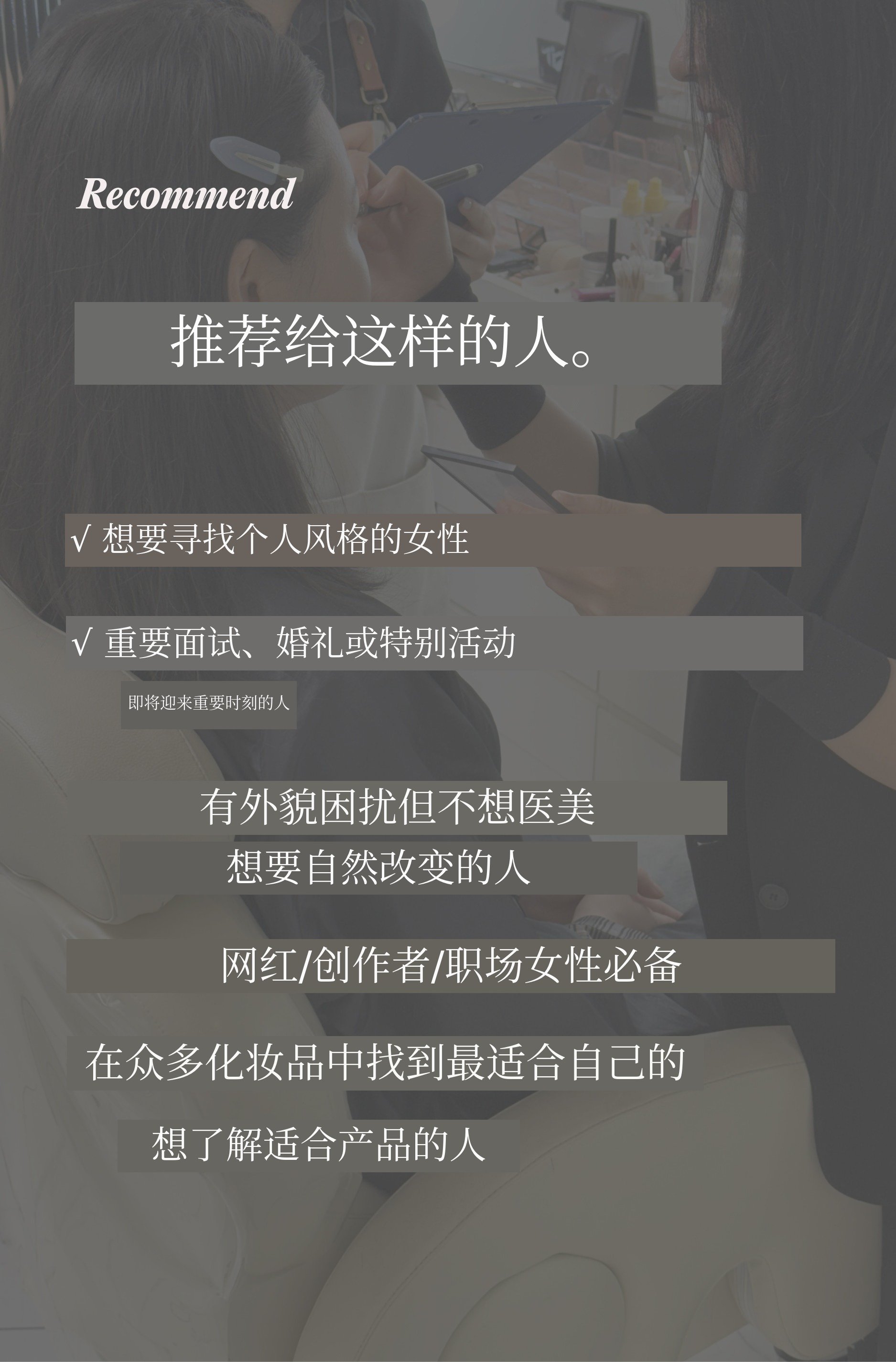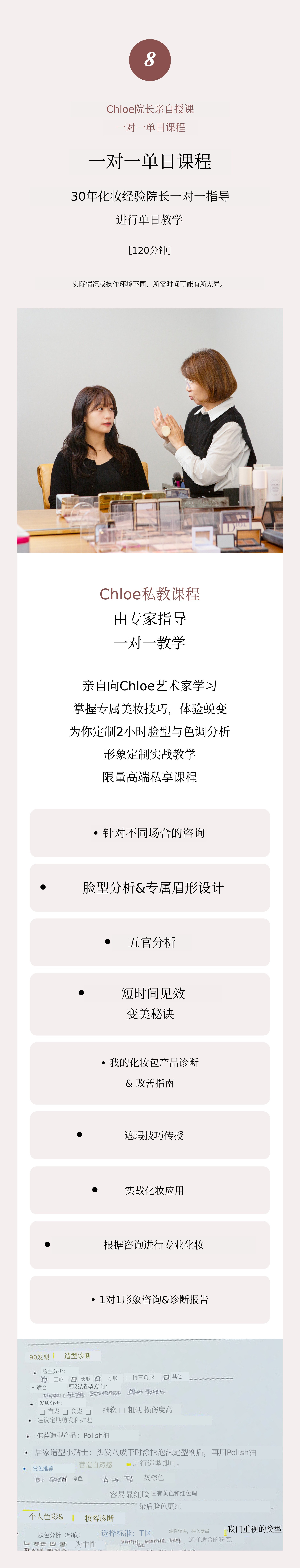 为需要亲自化妆和造型的人士准备, 由Chloe专家进行的1:1教学课程。