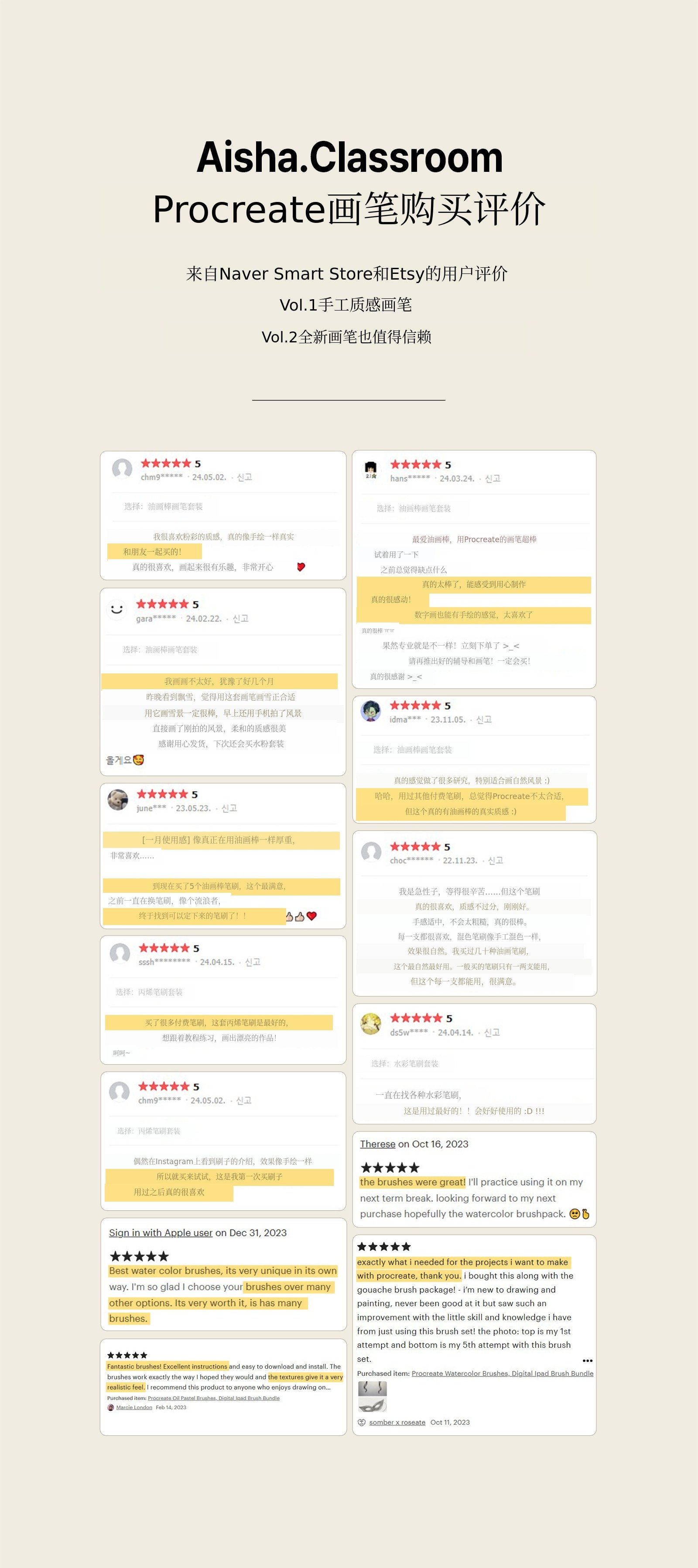 Aisha Brush Set Vol.1 & Vol.2 所有画笔的感性与质感