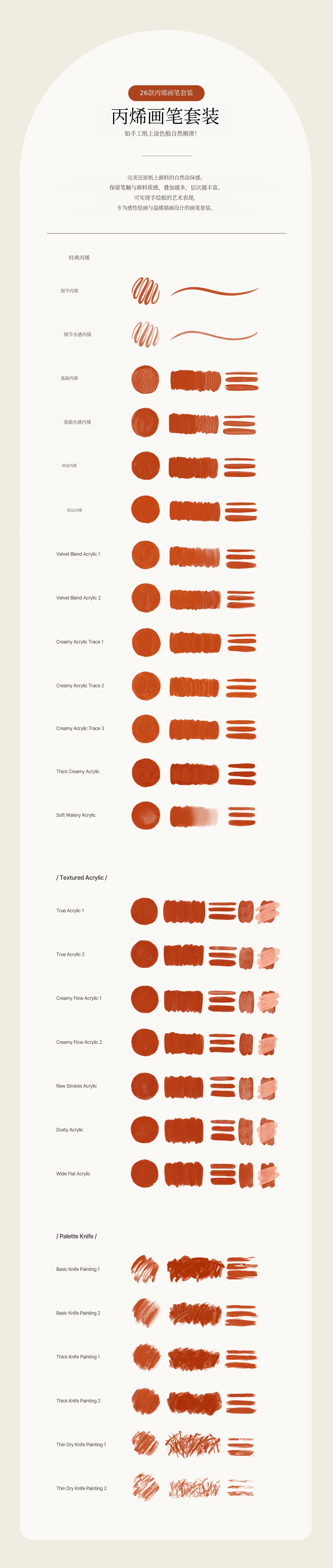 是完全保留了手工丙烯质感和表现方式的26种画笔。
