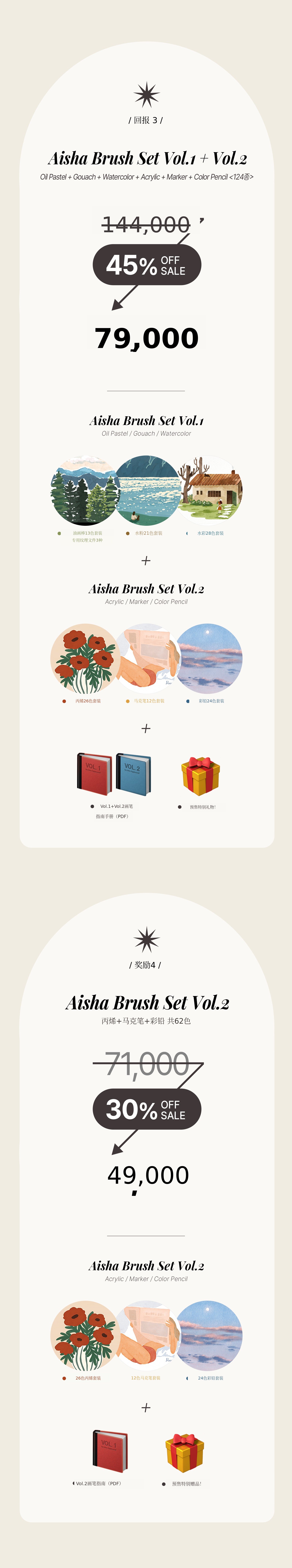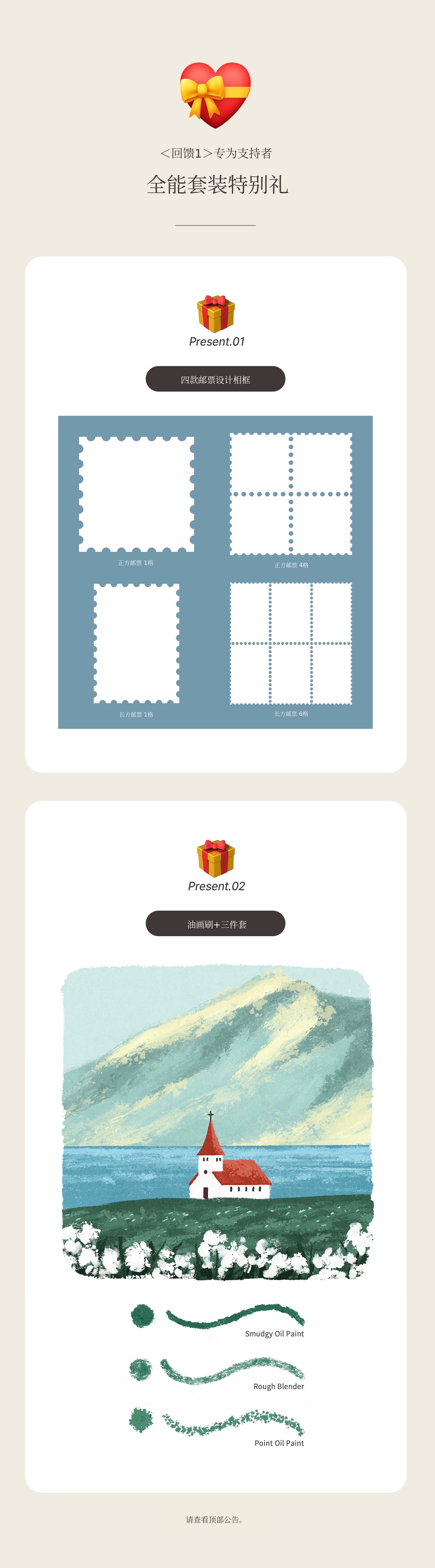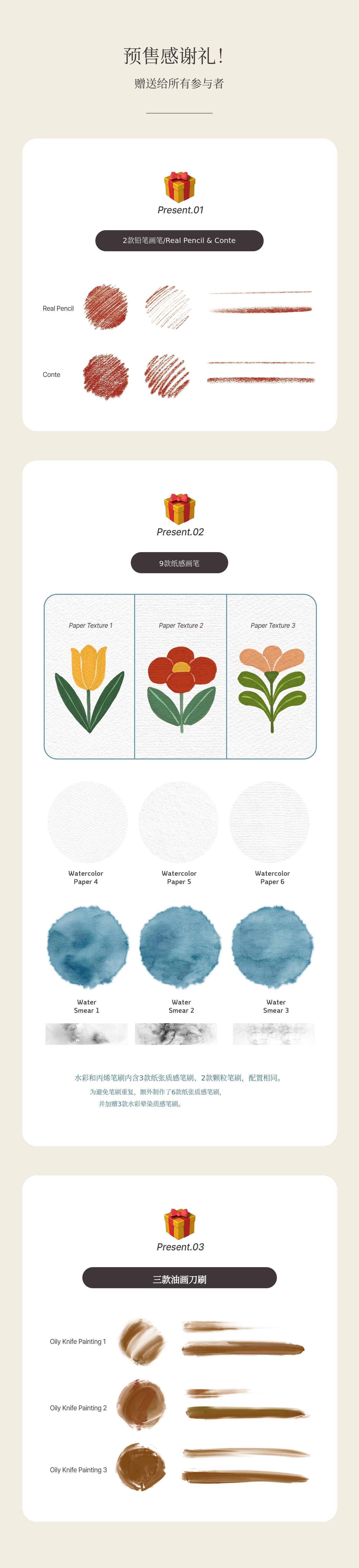 Vol.1, Vol.2 画笔指南书(PDF) 一同赠送。