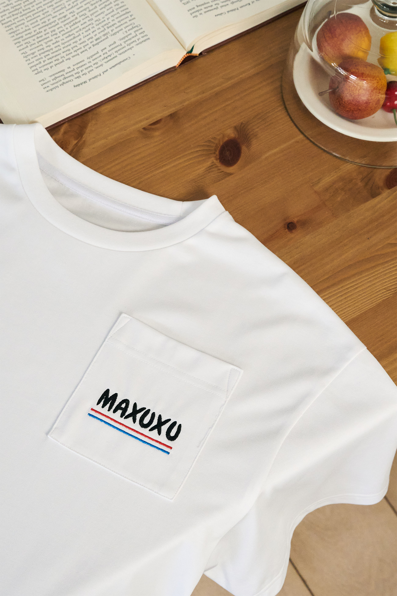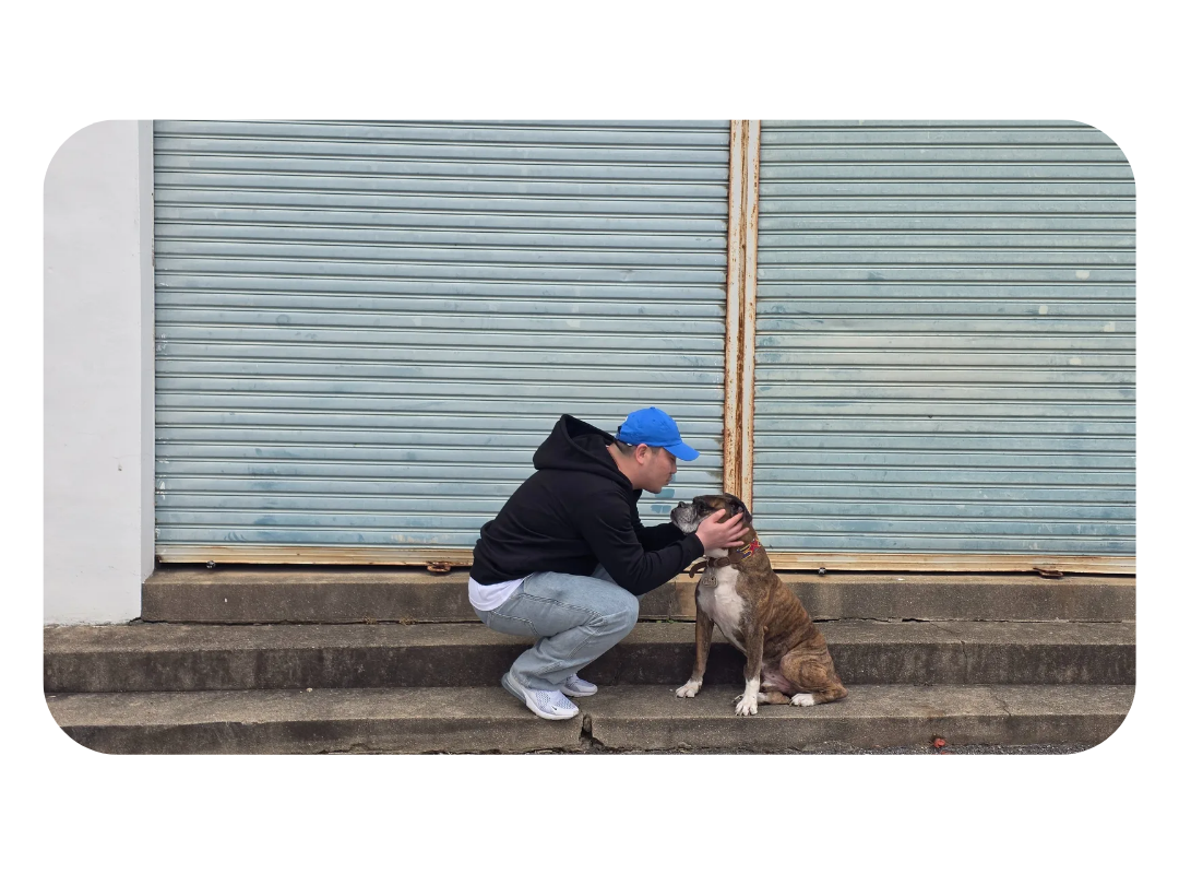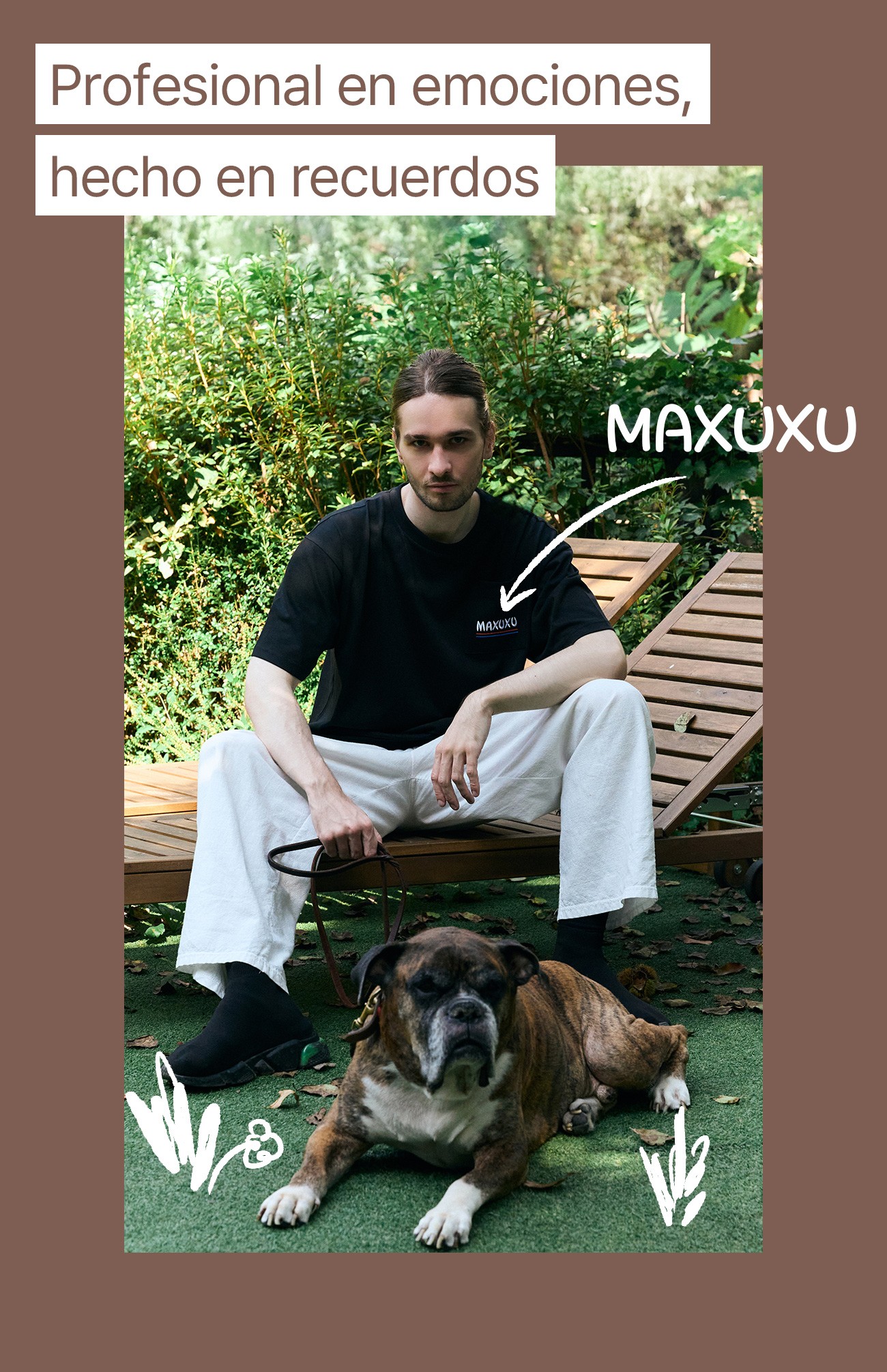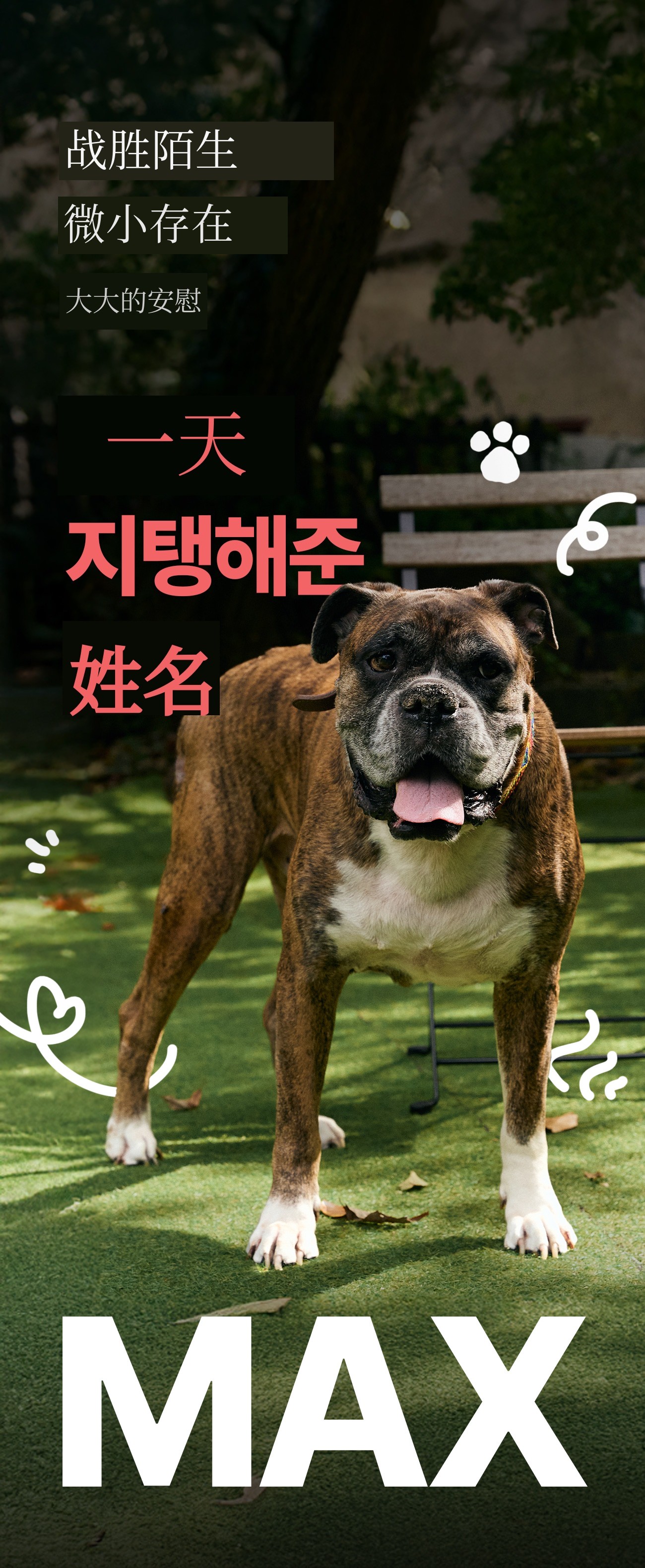 每位宠物主人和宠物狗都有属于自己的特别故事吧?我也想要纪念我那特别又珍贵的爱犬,所以想要制作一个能融入日常、随时陪伴在身边的东西。为了融入日常,必须经常拿在手上,或总是在身上的某个地方,所以我选择了大家都喜欢穿的T恤作为起点,并加入了体现拳师犬品种特点的非常可爱的设计。