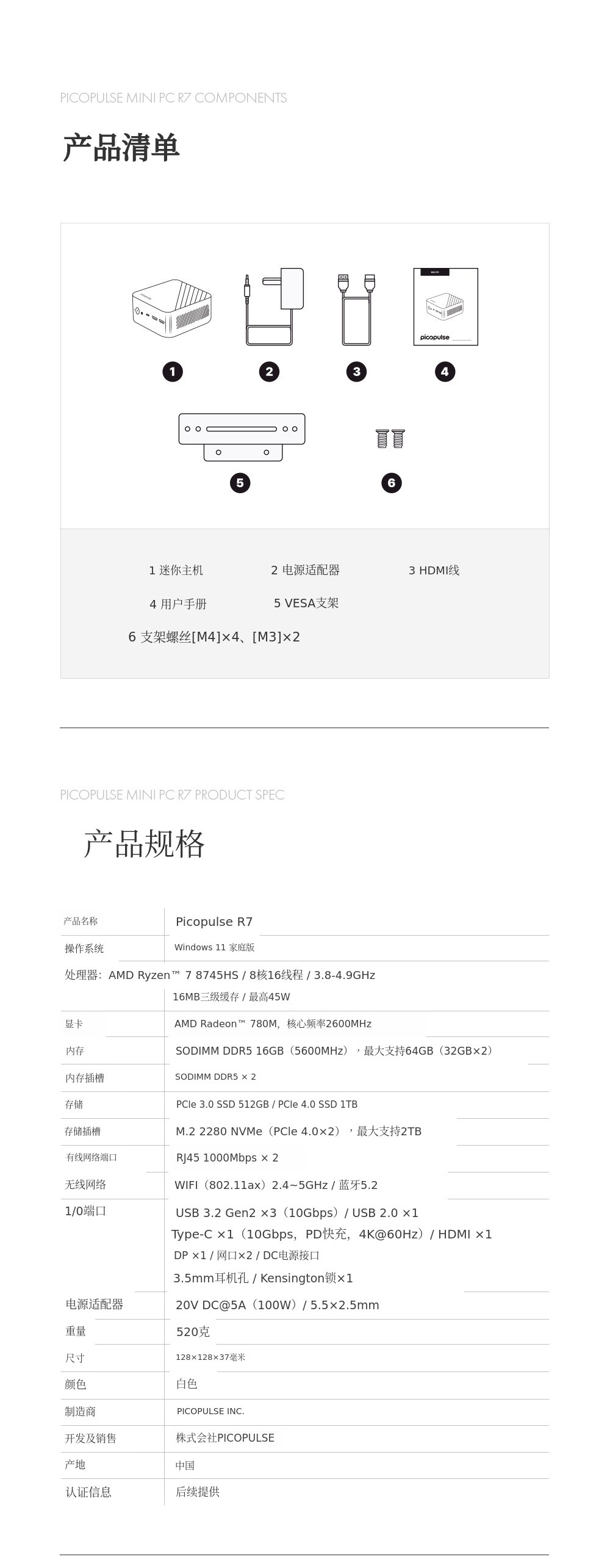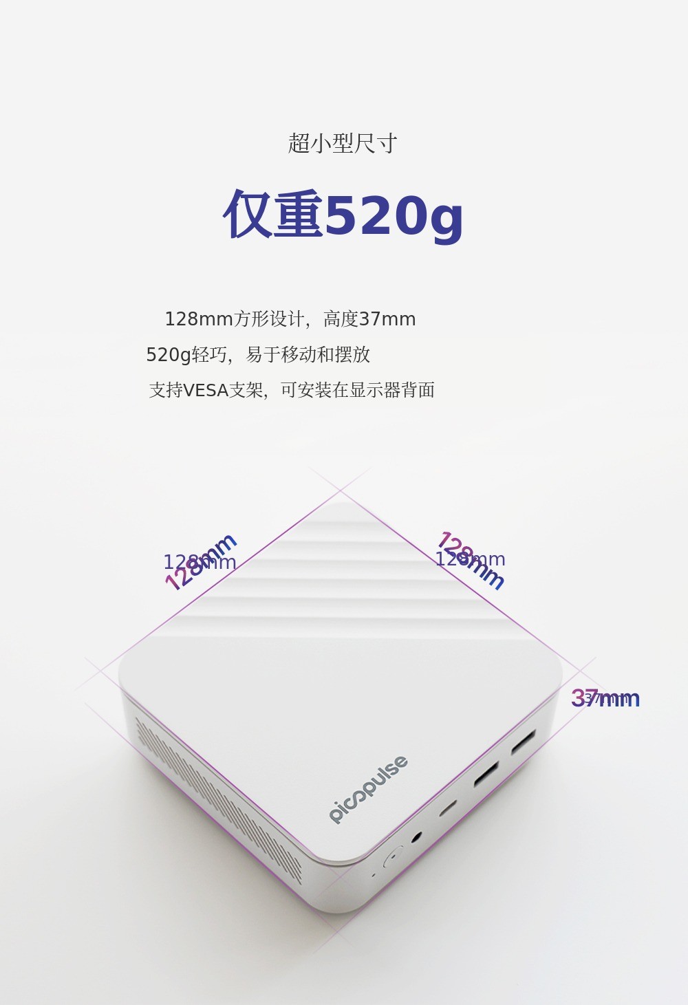 1. 🖥️ 超小型高性能游戏迷你PC - 搭载AMD Ryzen7 8745HS,支持高负载任务 2. ⚡ 紧凑设计与强大性能 - 128mm方形,520g轻量,支持VESA支架 3. 🎁 平台独家首发及优惠 - 终身免费Windows 11 Home提供