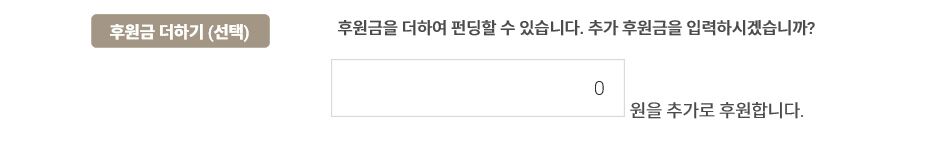 도서/산간 지방은 리워드 수령 시 추가 배송비(+3000원)가 발생할 수 있습니다. 펀딩 시 추가 후원금 입력하기 란에 3000원을 추가해주세요. 누락 시 배송처리가 지연될 수 있습니다.