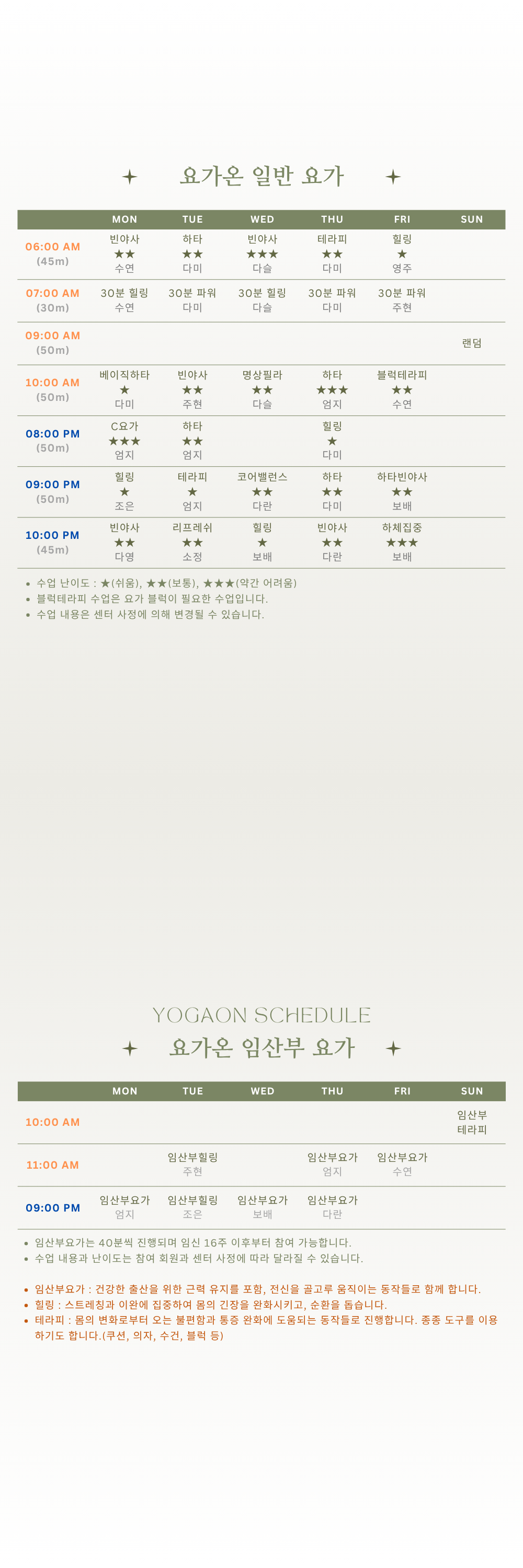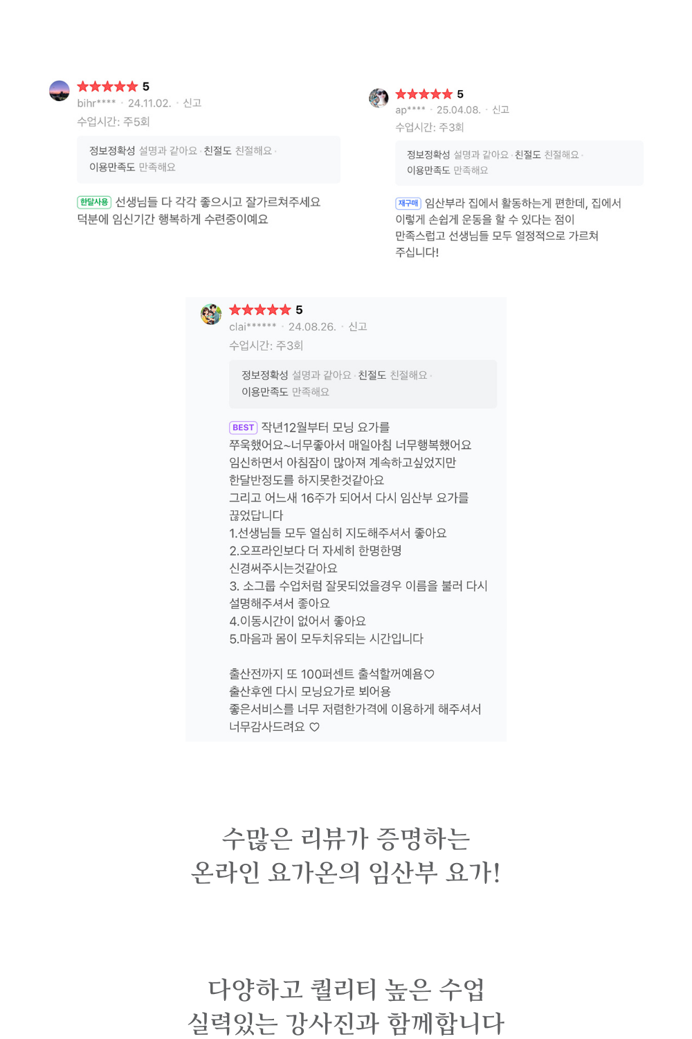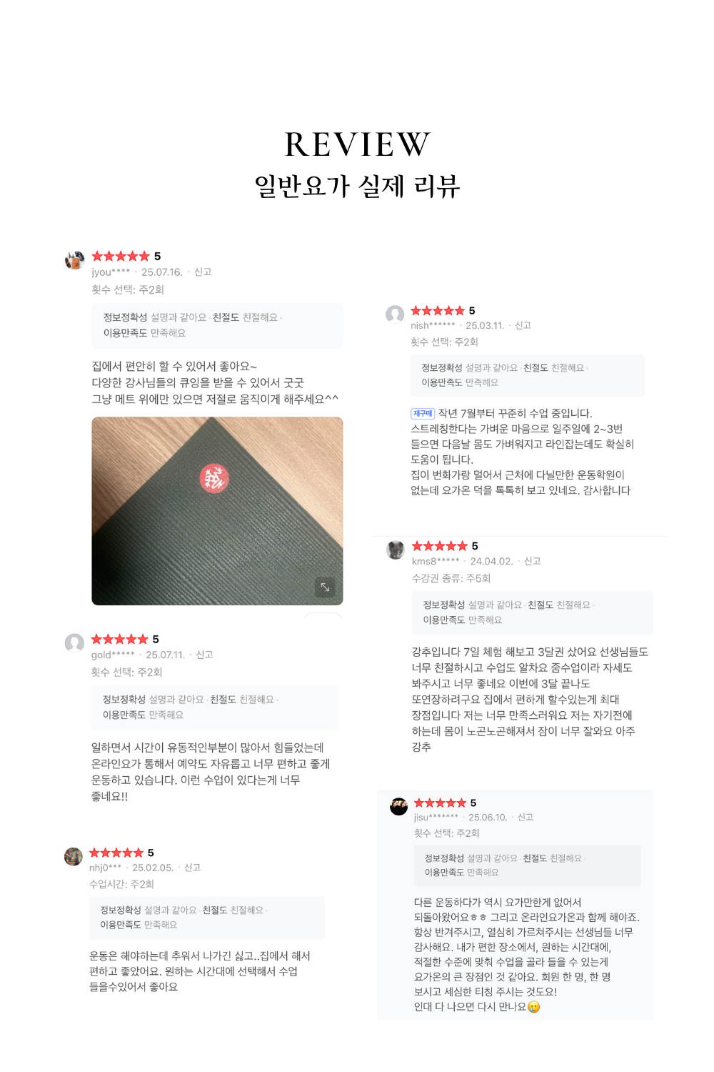 그렇게 태어난 요가온은, 이제 10명의 전문 강사진과 함께 새벽 수업부터 산전 요가까지 다양한 프로그램을 갖춘 온전한 온라인 전용 요가 스튜디오로 성장했습니다.