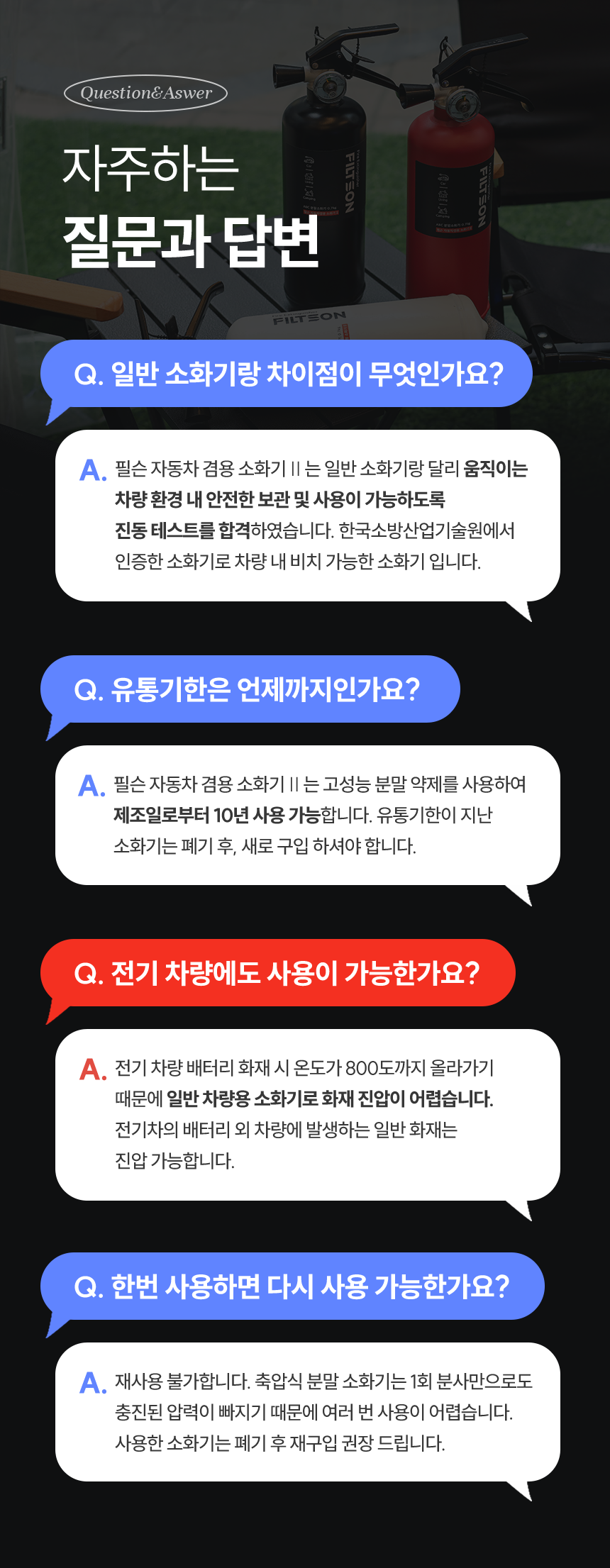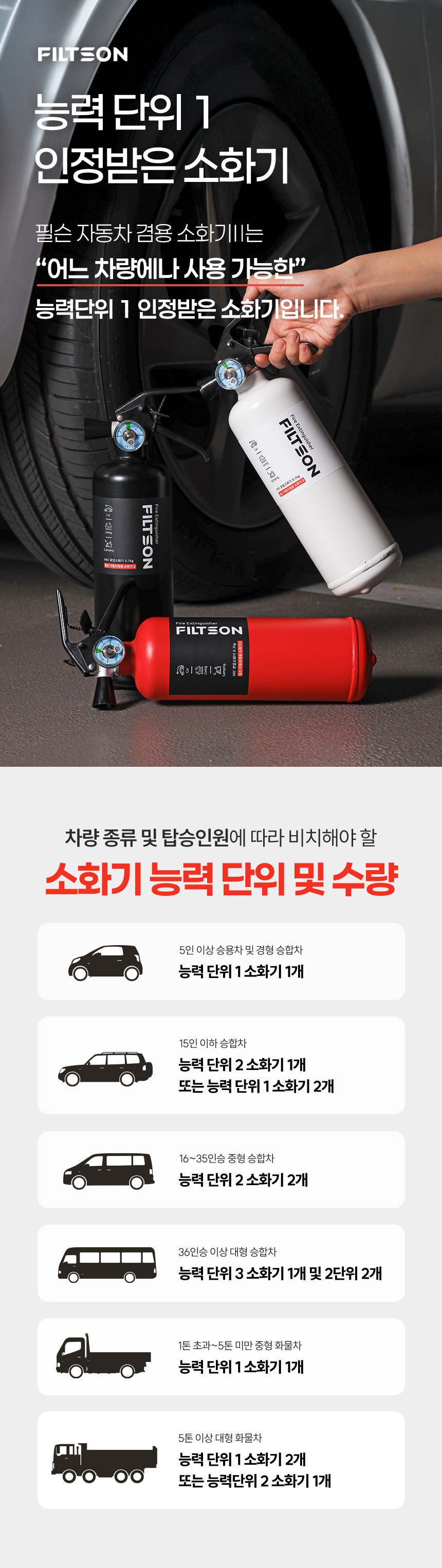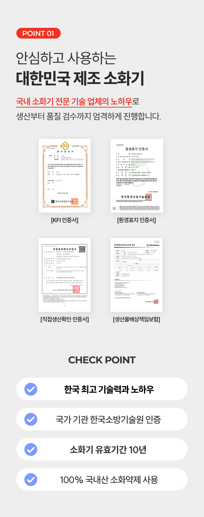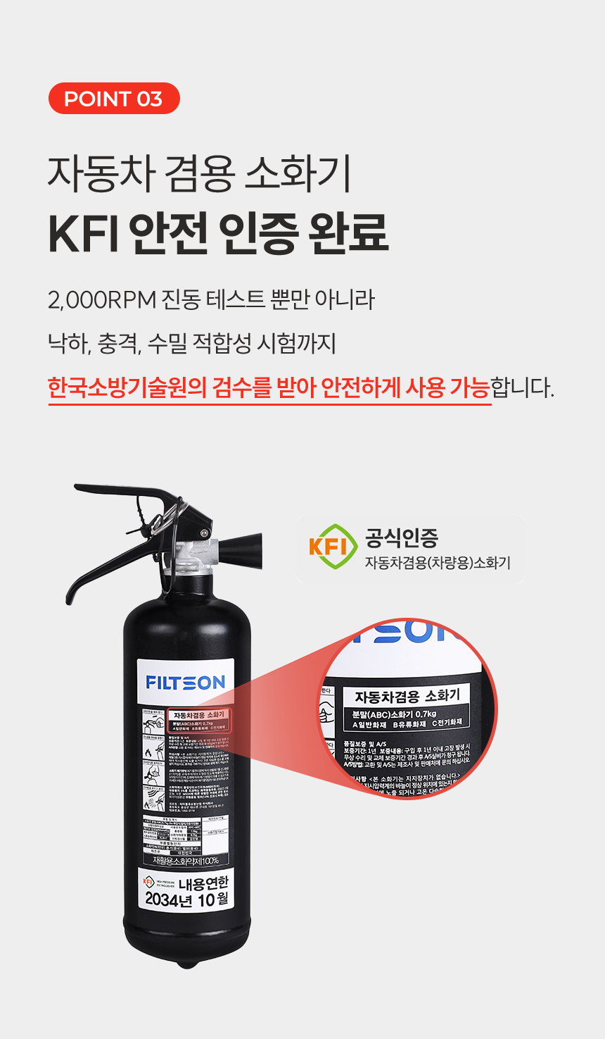 한국소방산업기술원(KFI) 공식 인증! 대한민국 최신 기술로 만든, 안심할 수 있는 "필슨 소화기" 입니다.