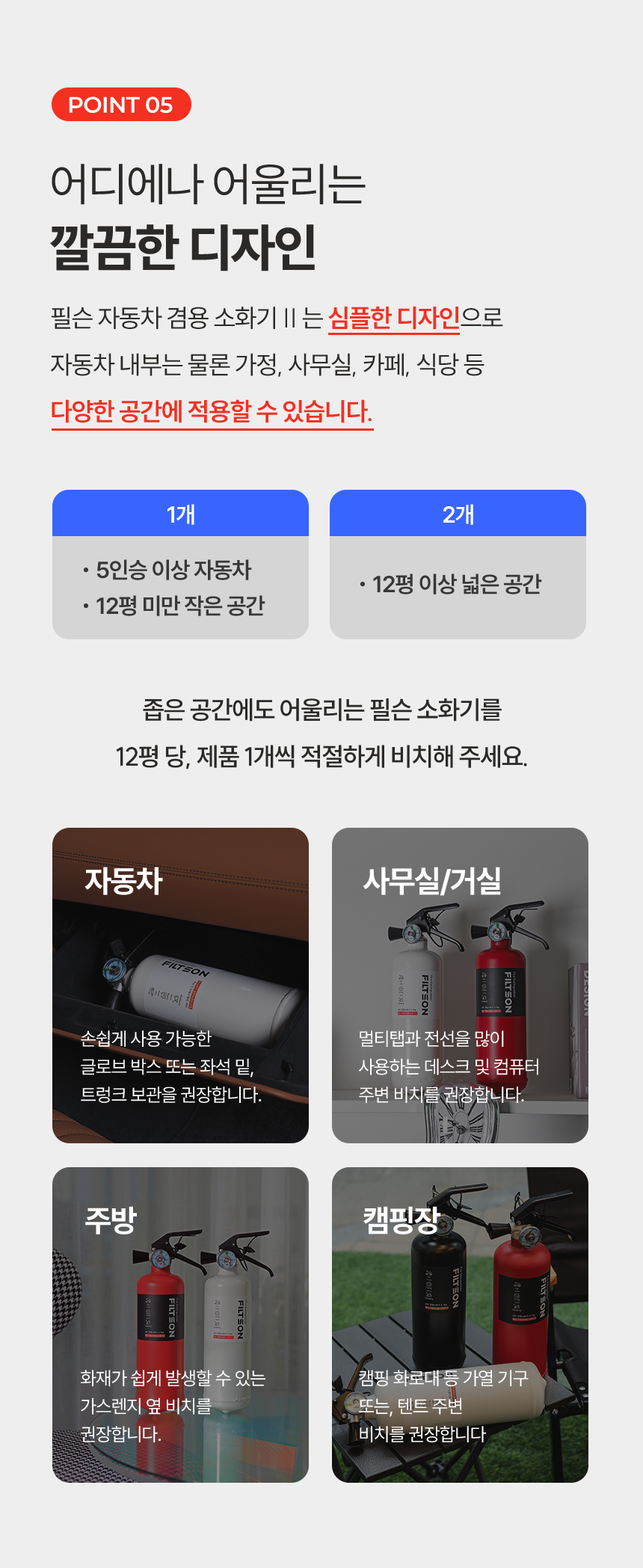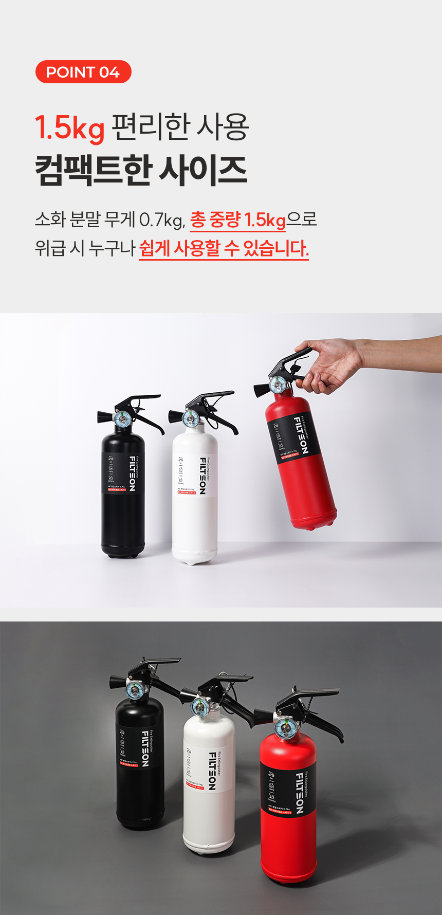 필슨 자동차 겸용 소화기는 가정에서도 안전하게 사용할 수 있습니다.