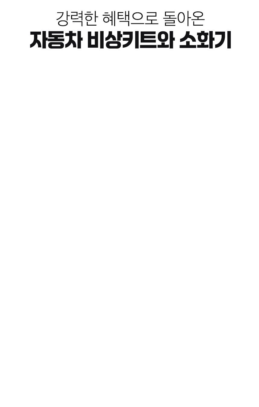 안녕하세요! 에스지생활안전의 일상생활 안전 솔루션을 제공하는 브랜드 '필슨'입니다. 저희 팀이 와디즈에 자신 있게 선보이는 ‘자동차 비상 키트’는 올해부터 차량에 반드시 비치해야 하는 차량용 소화기를 포함하여, 장마철 침수, 차량 충돌, 화재, 배터리 방전, 문 잠김 등 다양한 자동차 비상 상황에 한 번에 대응할 수 있도록 구성된 필수 차량 생명 키트입니다.