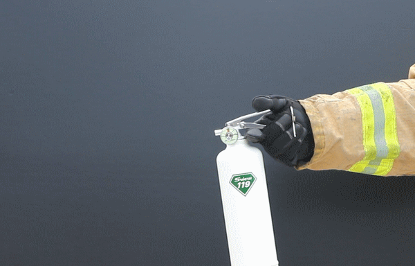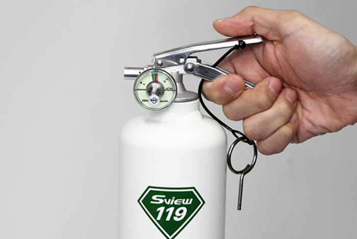 2. 소화기를 움켜쥐고 힘껏 눌러