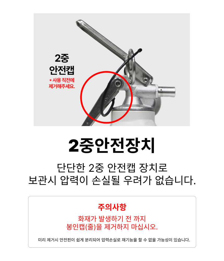 소화기를 안전캡이나 패키지안에 넣은 상태로 보관하는 것을 권장드립니다.