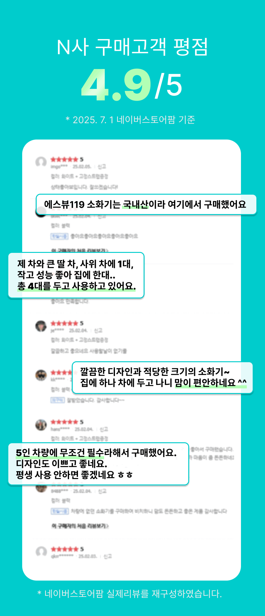 소화기 사이즈를 꼭 확인하세요.