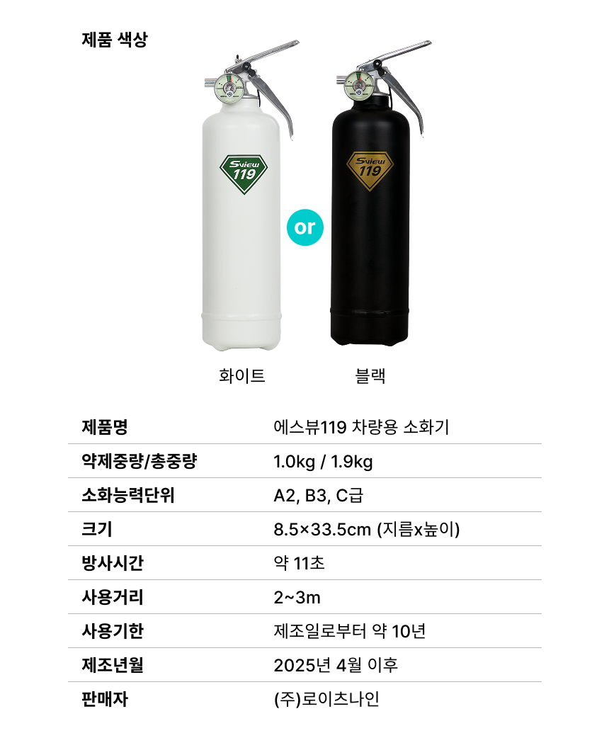 안녕하세요, 서포터 여러분! 로이츠나인입니다. 로이츠나인 대표 브랜드 '에스뷰'는, 2008년에 시작하여, 대한민국 1세대 보안필름으로 잘 알려져 있는데요. 오랫동안 전 세계 여러 국가에서 사랑받으며, 제품의 품질과 신뢰성을 입증해왔습니다. 'safety view'를 의미하는 에스뷰는 여기서 멈추지 않고, 안전 브랜드로서 또 한번 도약하기 위해 2024년 에스뷰 119 차량용 소화기를 런칭했습니다. 차량용 소화기가 끝이 아니라, 앞으로도 많은 분들의 소중한 일상을 지키는 든든한 수호자가 될 수 있도록, 계속해서 안전과 관련된 다양한 상품을 여러분께 선보이고자 합니다.