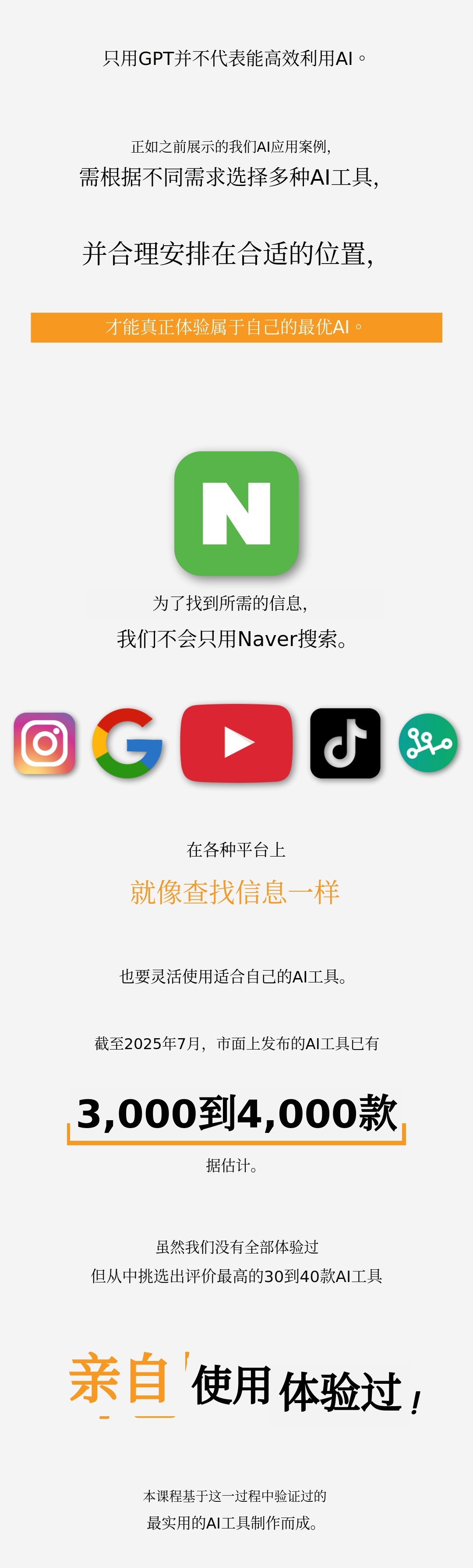 在信息洪流中,许多人对AI感到迷茫,不知道该学什么、怎么学、从哪里开始。本课程和电子书并不是空洞的理论书,而是我们过去数年在韩国在线市场的各种项目中,亲自实践AI和自动化系统所积累的‘实战现场手册’。