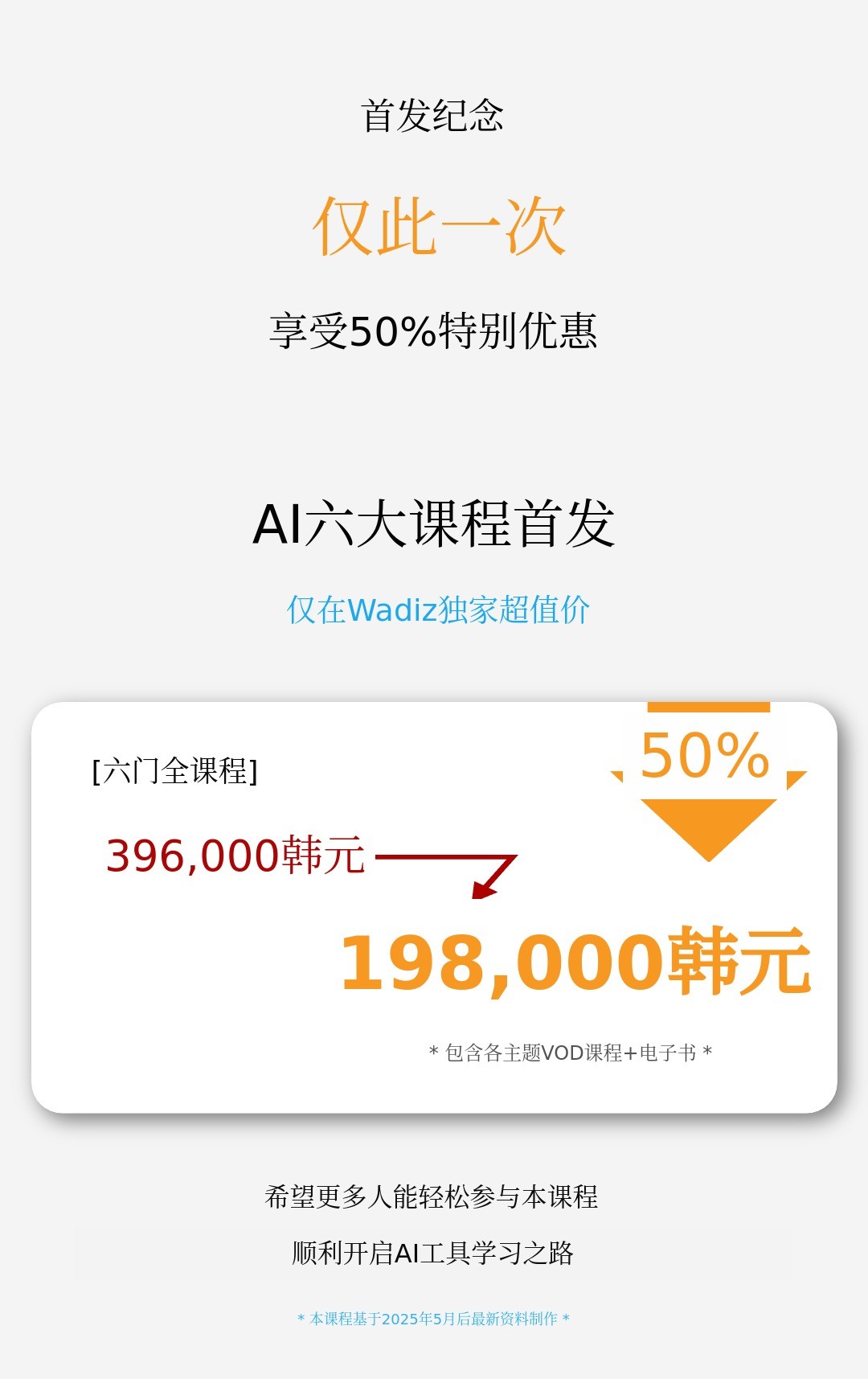 为了学习本VOD课程,从必须使用的AI工具的注册流程、复杂的订阅方案选择,到最基础的初始操作方法,讲师会实时演示并回答问题,与您一起进行。