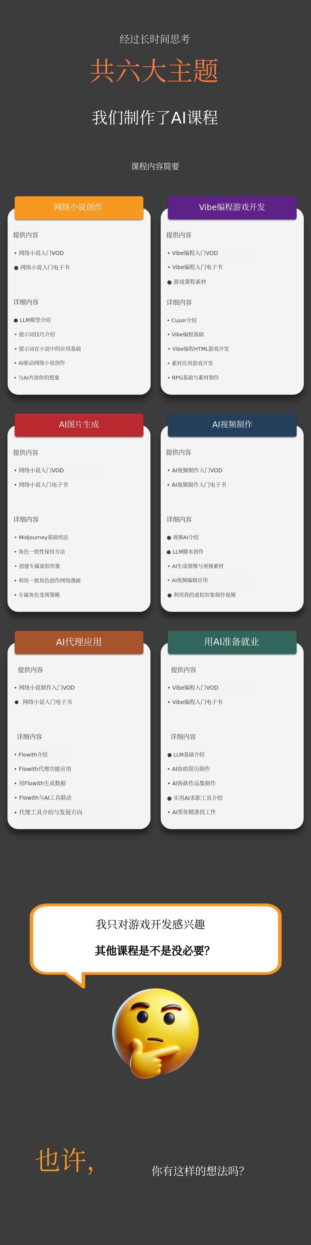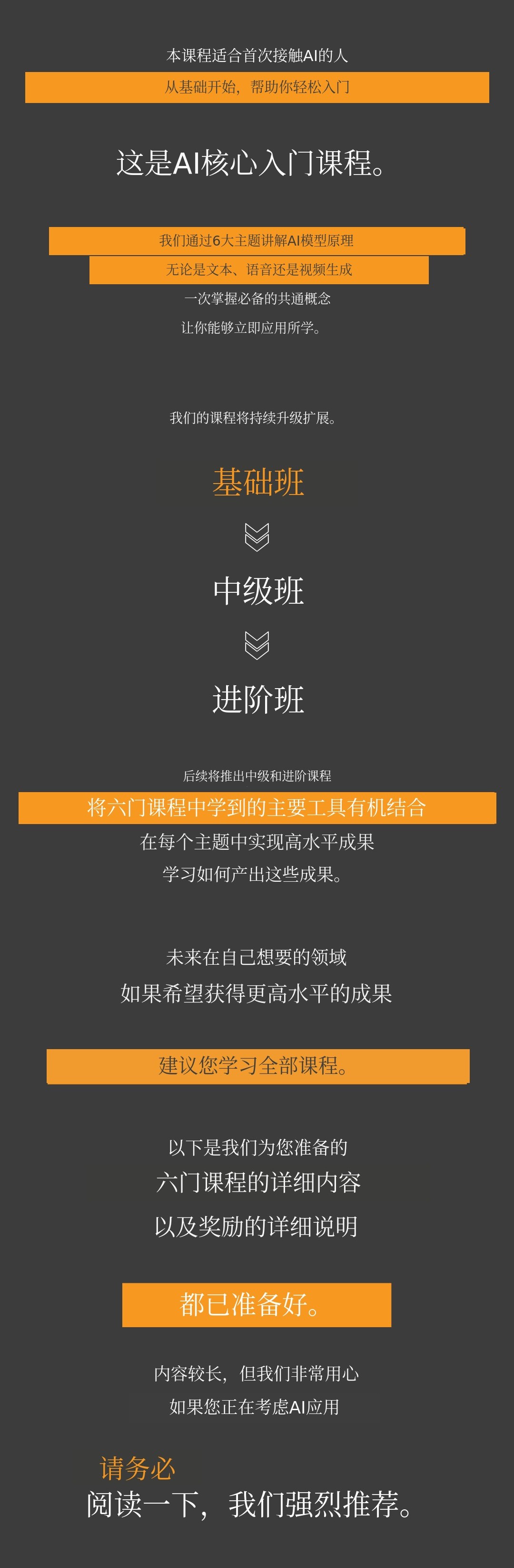 AI这个词如今已不仅仅是技术,更成为了时代巨大变革的象征。你准备好成为这段伟大旅程的主角了吗?我们将陪你迈出第一步。