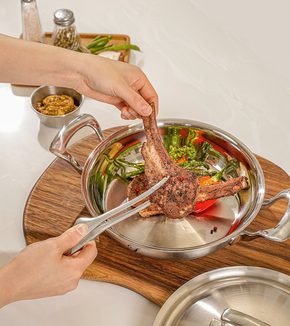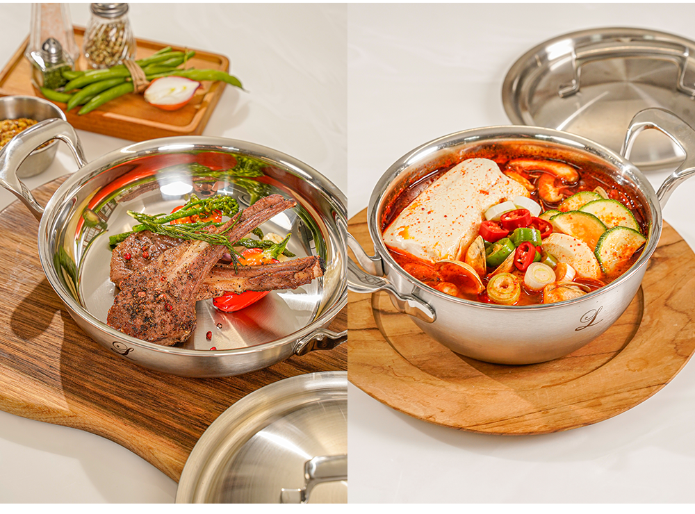 如果大家只关注锅的设计,韩一普利玛斯则根据要做的料理,计算了材料、厚度、高度等所有因素,打造出具备功能性元素的热设计锅,让料理能够完美完成。
