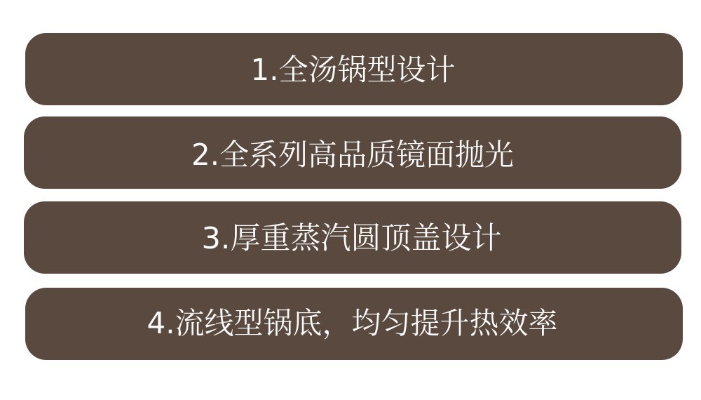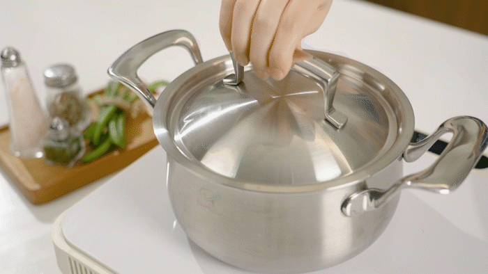 我们设计了从底部到侧面都能完全加热并均匀保持的线条形状。这种流线型的底部设计能快速传递热量,提高热效率。