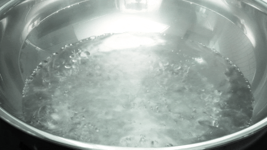 在锅中倒入约2/3的水,加入10~20ML醋后煮沸。