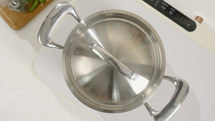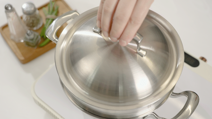 锅盖本身不轻,具有厚重感,仅凭锅盖就能在锅内形成压力,做出美味的料理。
