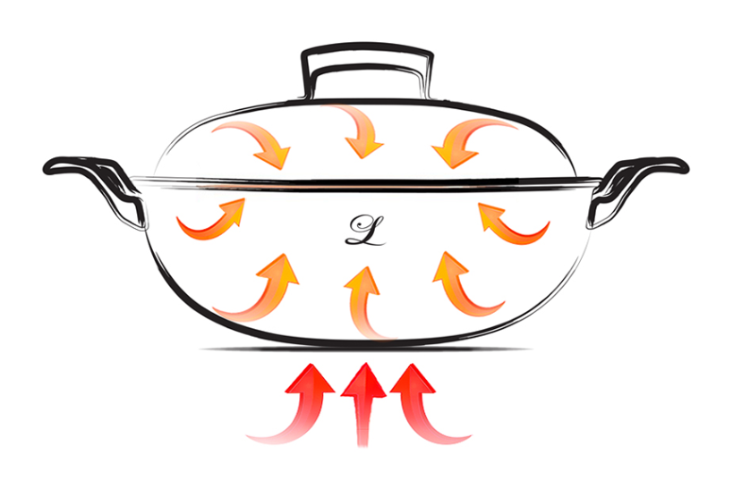 水膜效果出色的卢瓦尔锅盖,连蒸汽浴都能实现。凝结在锅盖上的食材原有水分均匀渗透到食物中,让您品尝到多汁鲜嫩和丰富香气。
