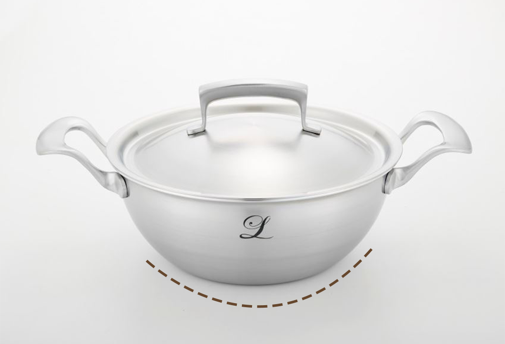 露珠(水滴)形状的锅身不仅设计美观,尤其在搅拌咖喱等料理时,能与勺子的弧度完美贴合,搅拌得干干净净。