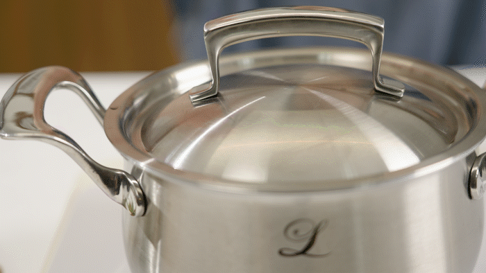 料理的最后阶段。当蒸汽升腾时,请旋转锅盖!