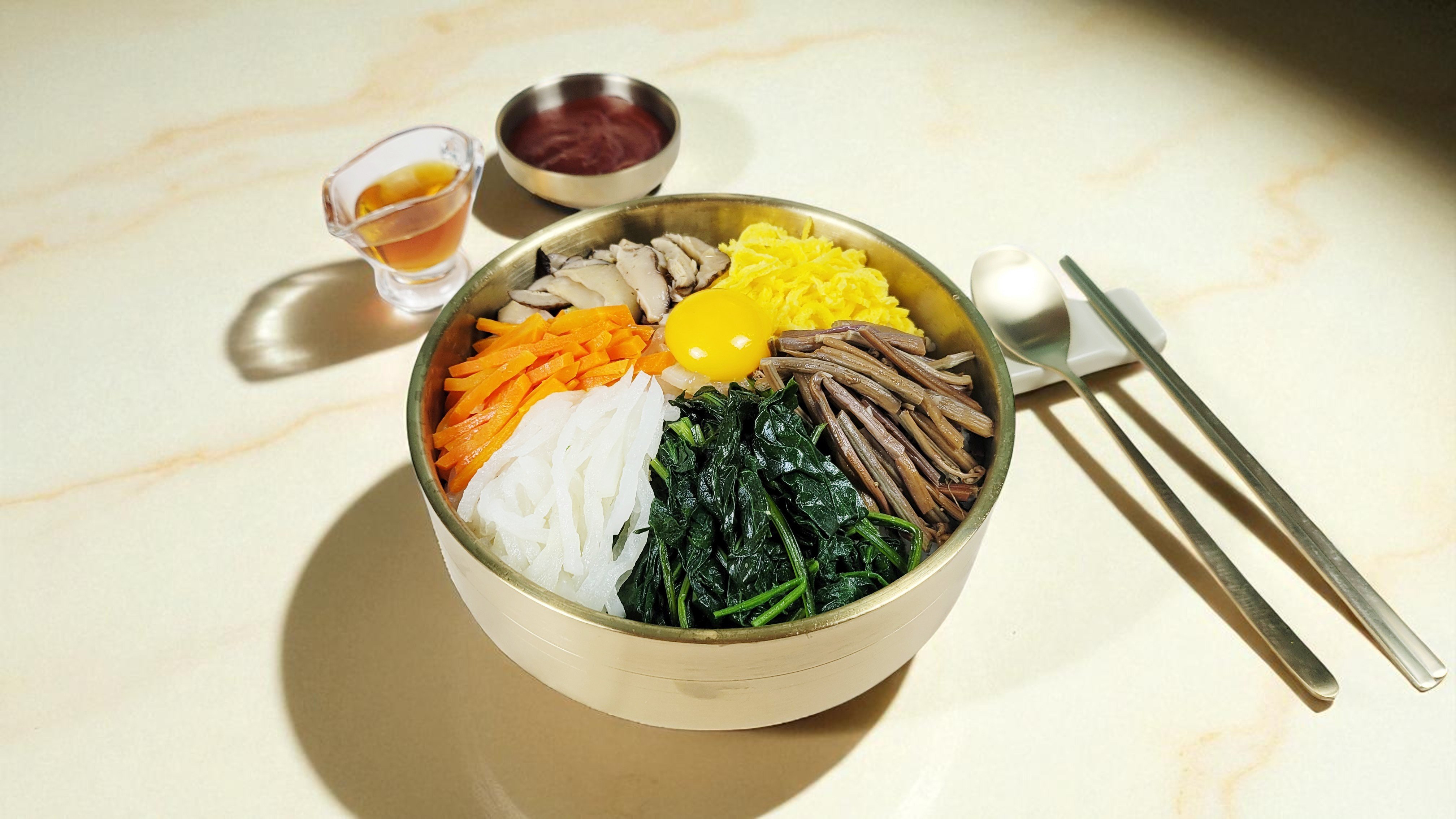 - 全部使用国产野菜制作的拌饭和野菜。