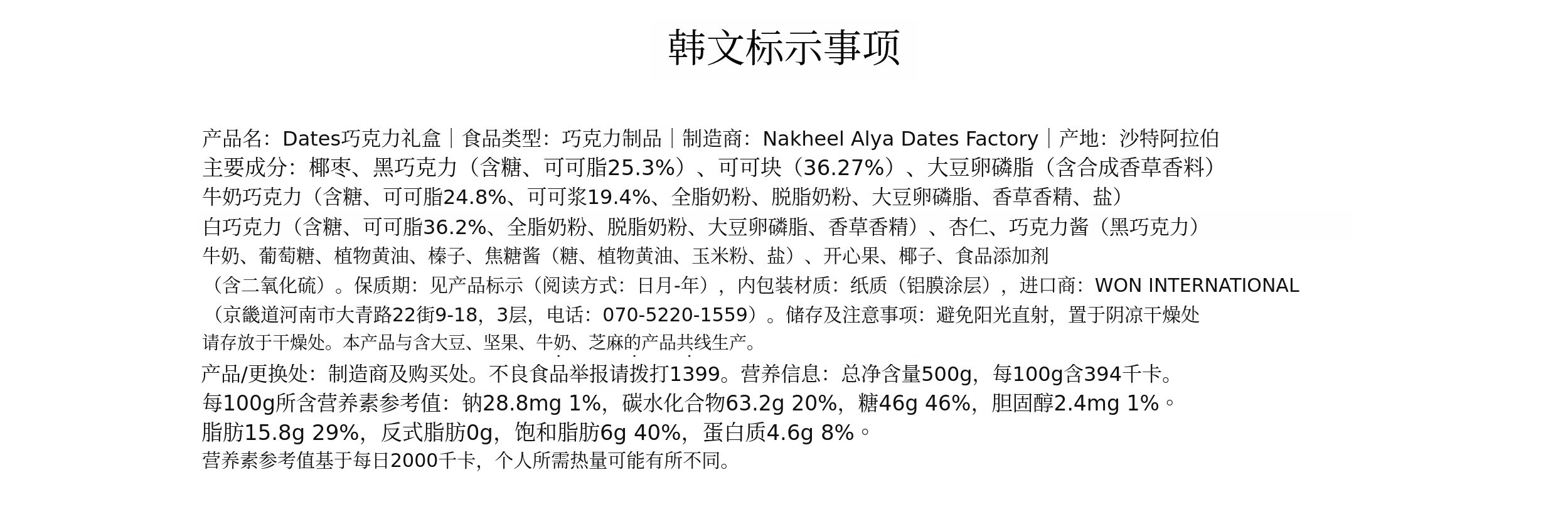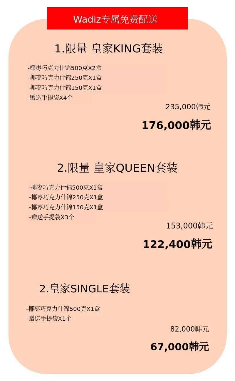 我们是Nakheel Alya(纳基尔阿利亚)韩国官方进口商。非常高兴通过Wadiz向各位支持者展示沙特直进口的高端椰枣巧克力。我们希望介绍不是充满精制糖的零食,而是用健康原材料制成的健康甜点。在Wadiz以最优的优惠和组合呈现,敬请多多关注。