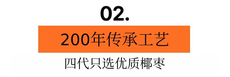凭借200年传承的匠人技艺,四代人专注于椰枣。基于家族世代积累的经验,每年只精选品质最优的椰枣使用。用机器无法比拟的用心和眼光采收的椰枣,从大小、甜度到口感都经过严格筛选。